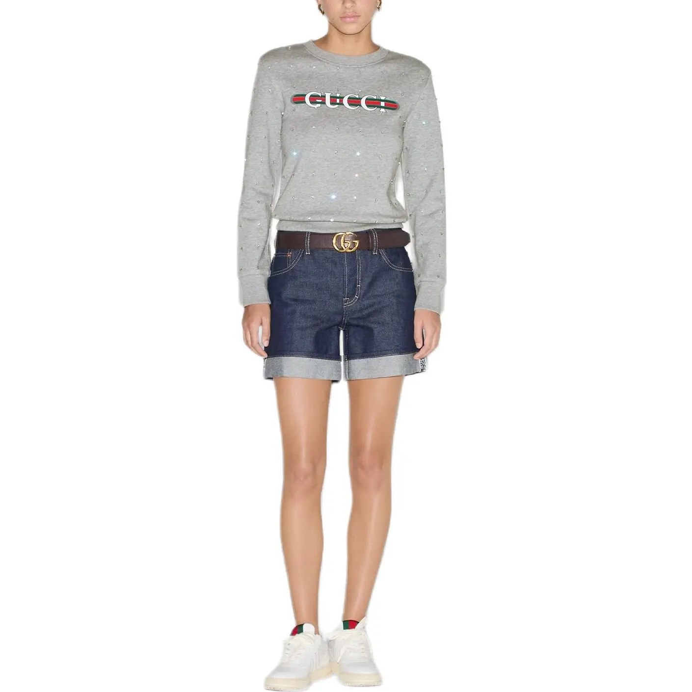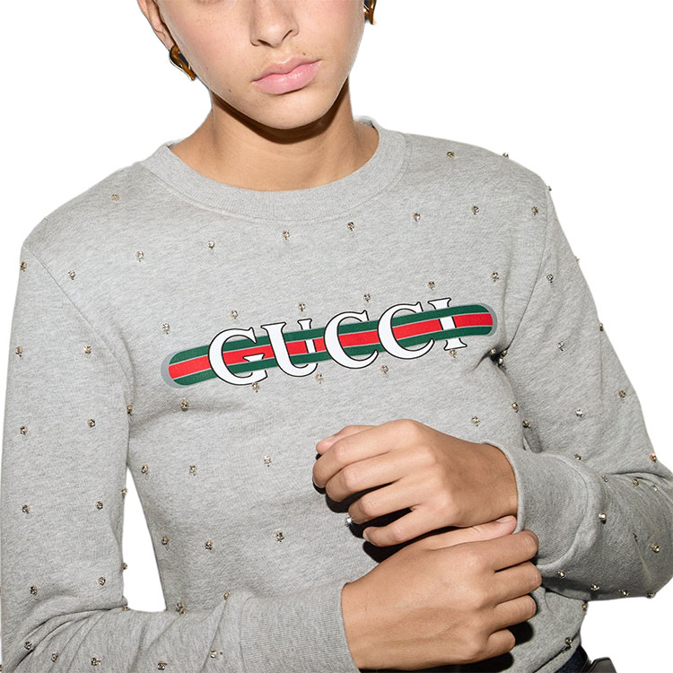 Футболка с принтом логотипа и декором GUCCI, серая 40 394₽