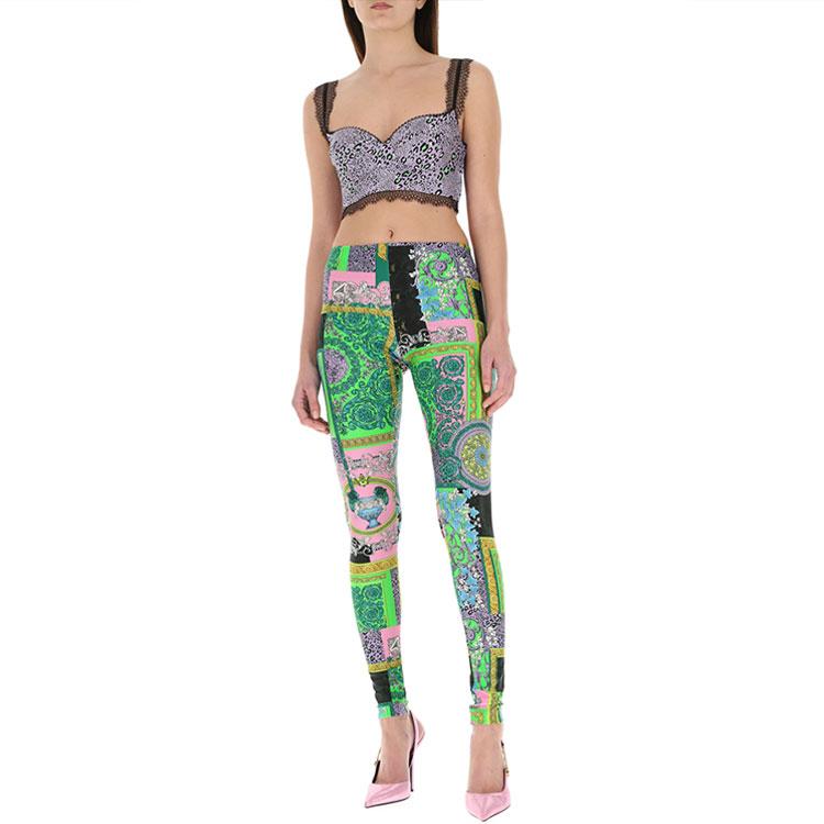 Футболка-бралетт из шелка с леопардовым принтом 'Lilac' VERSACE, фиолетовая