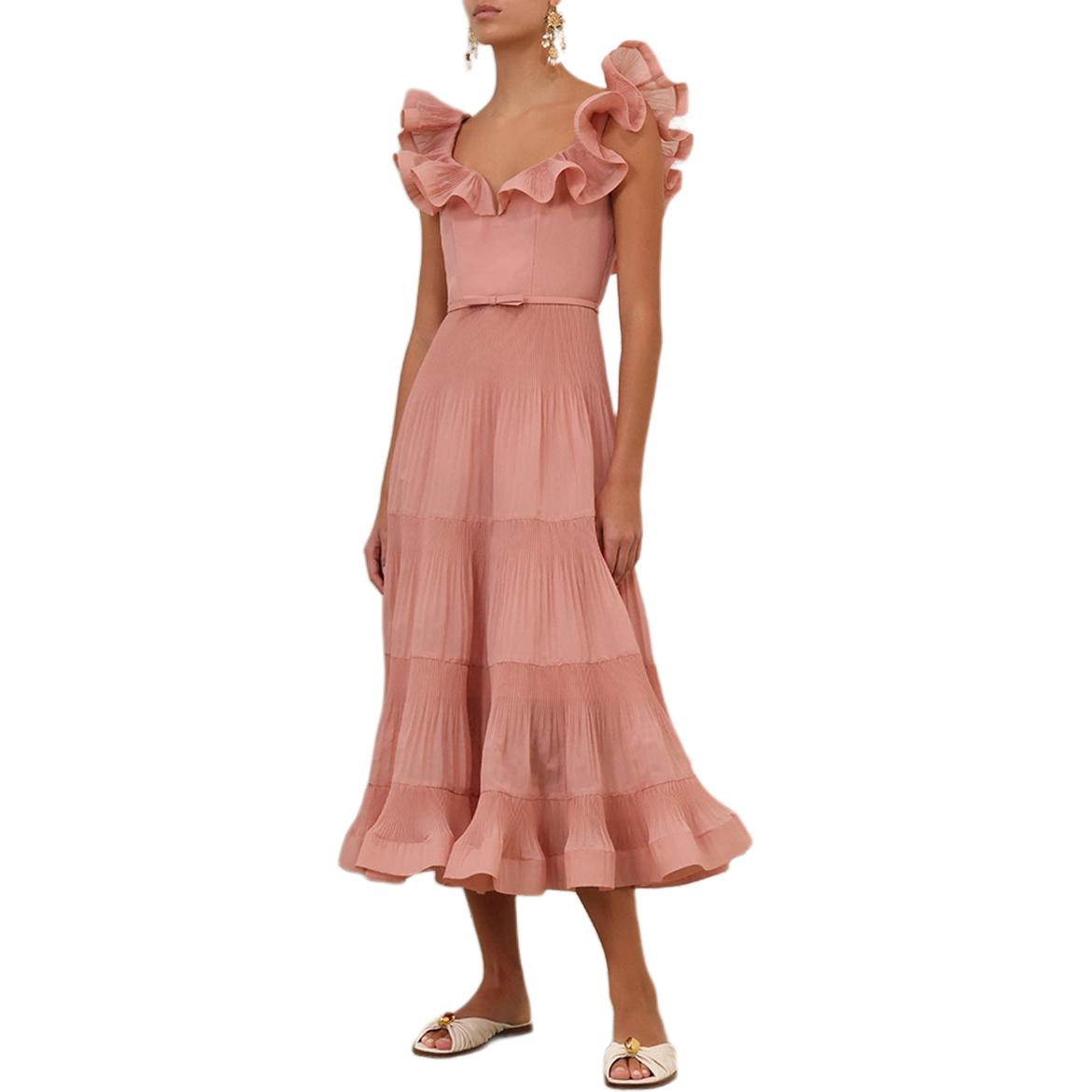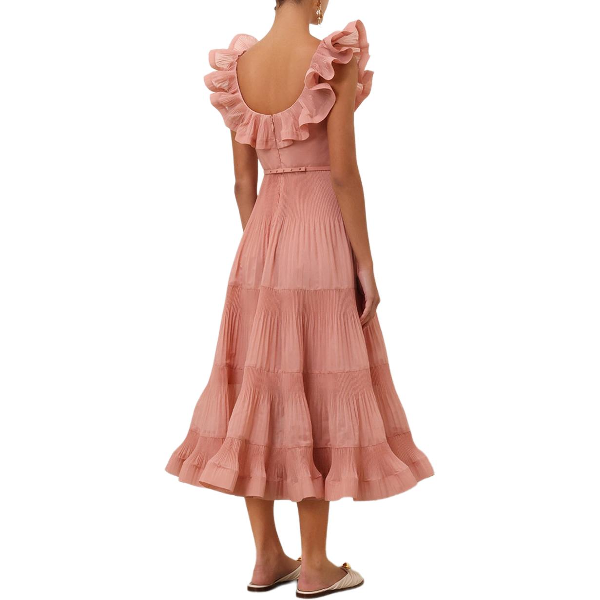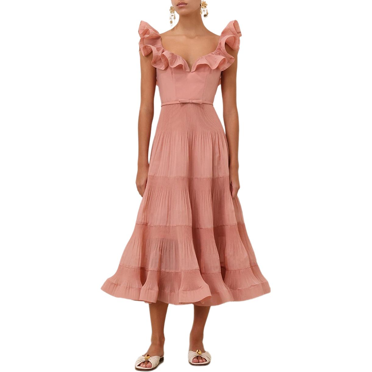 Плиссированное платье миди с рюшами Zimmermann, красное 84 377₽