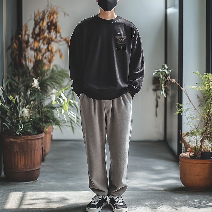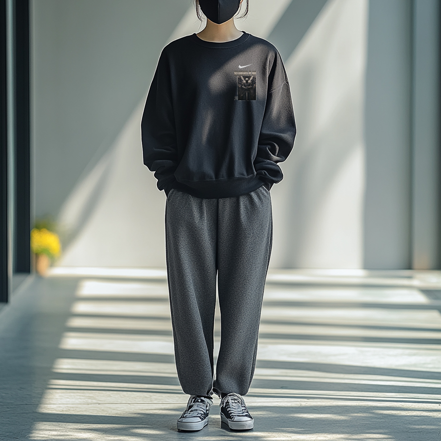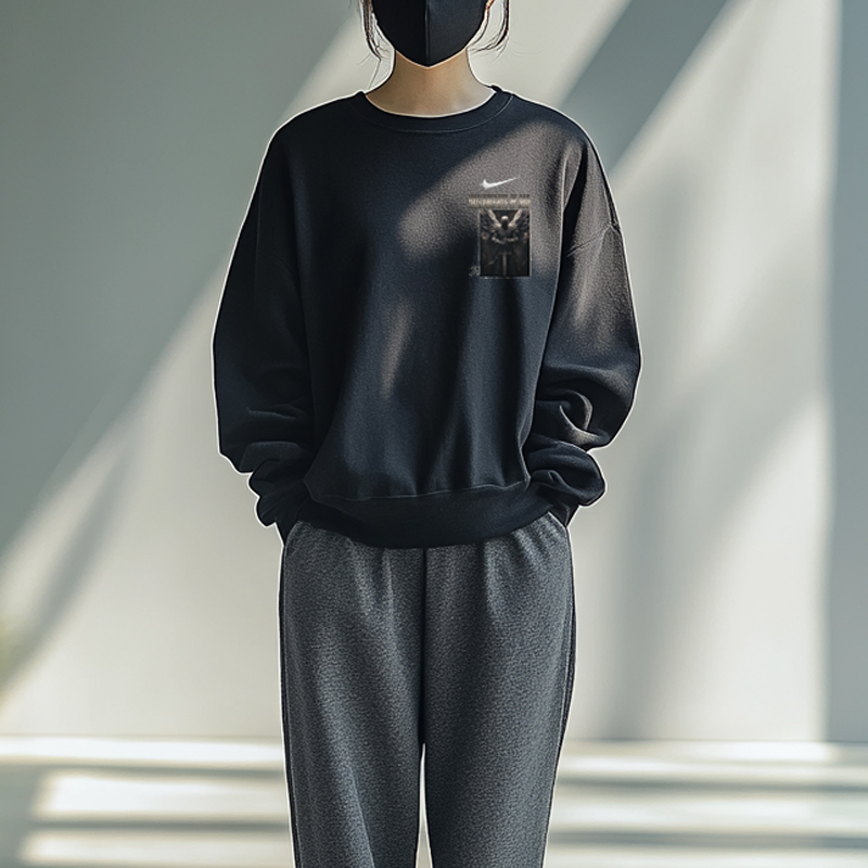 Эта модель, изготовленная на заказ, представляет собой оригинальную чёрную толстовку с круглым вырезом и длинными рукавами, украшенную логотипом Nike. Этот оригинальный дизайн — первый в своём роде, с принтом высокой чёткости, что минимизирует вероятность того, что вы наденете такую же вещь, как и другие.