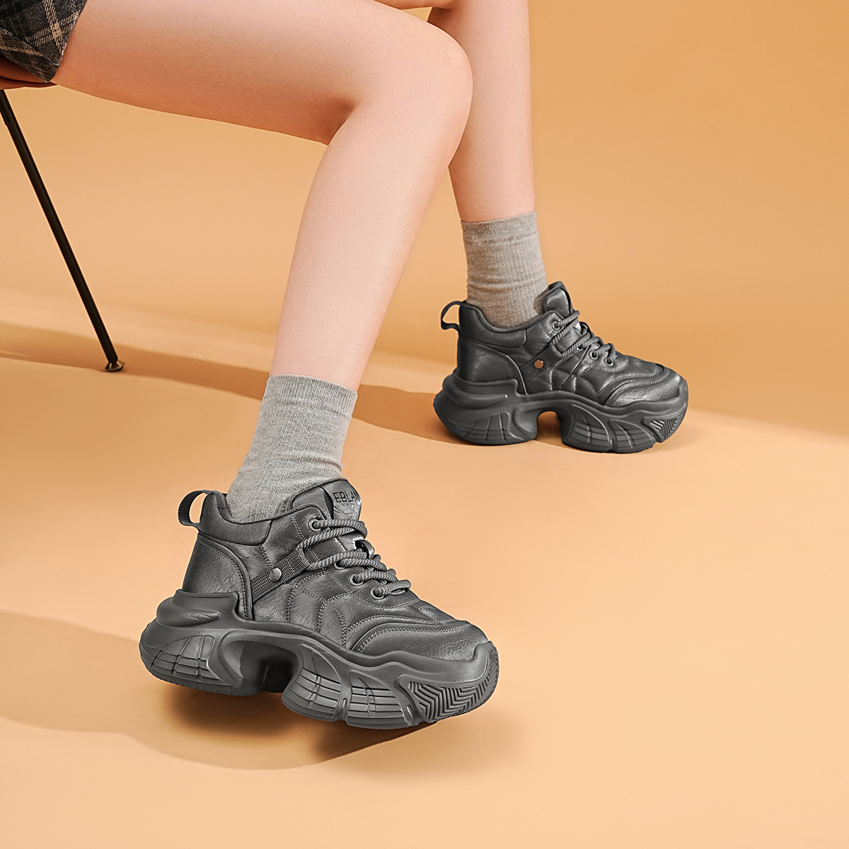 Массивные кроссовки женские серые EBLAN