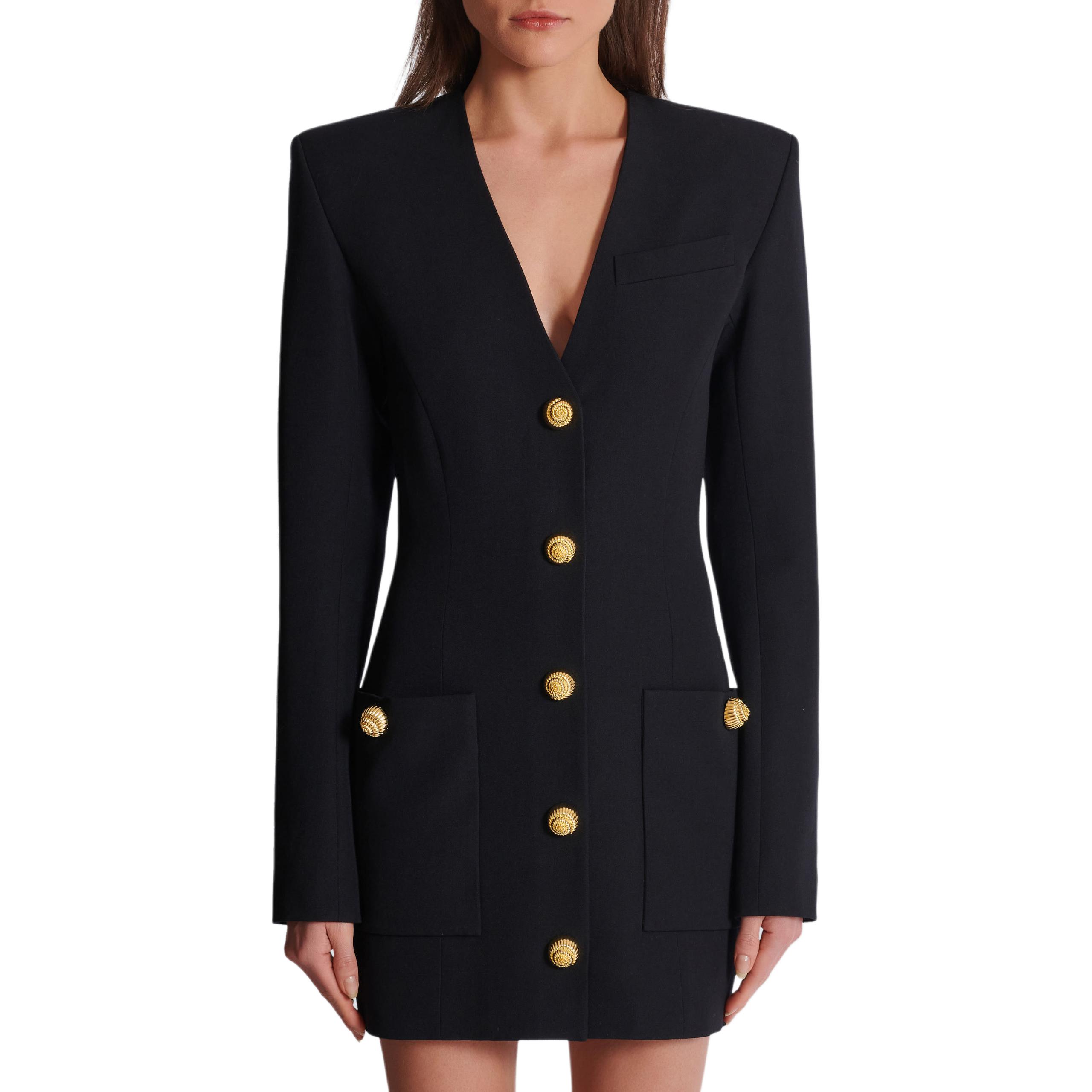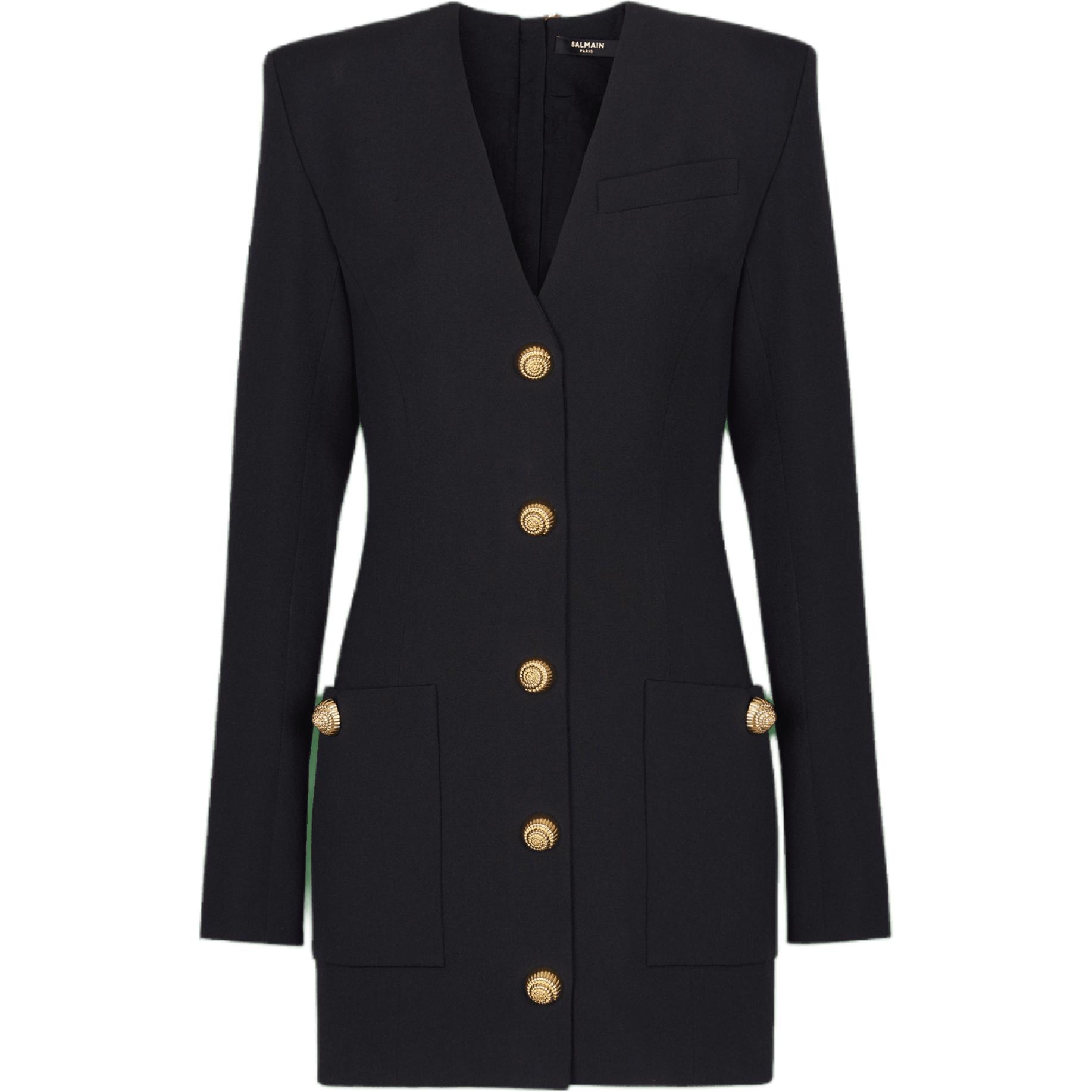 Черное мини-платье BALMAIN с V-образным вырезом и пуговицами