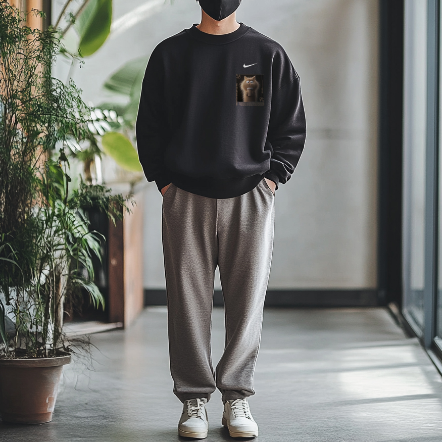Эта модель, изготовленная на заказ, представляет собой оригинальную чёрную толстовку с круглым вырезом и длинными рукавами, украшенную логотипом Nike. Этот оригинальный дизайн — первый в своём роде, с принтом высокой чёткости, что минимизирует вероятность того, что вы наденете такую же вещь, как и другие.