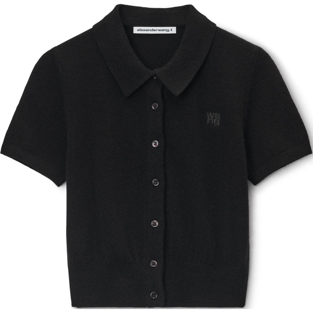 Футболка поло с вышитым логотипом Alexander Wang, черная 34 051₽