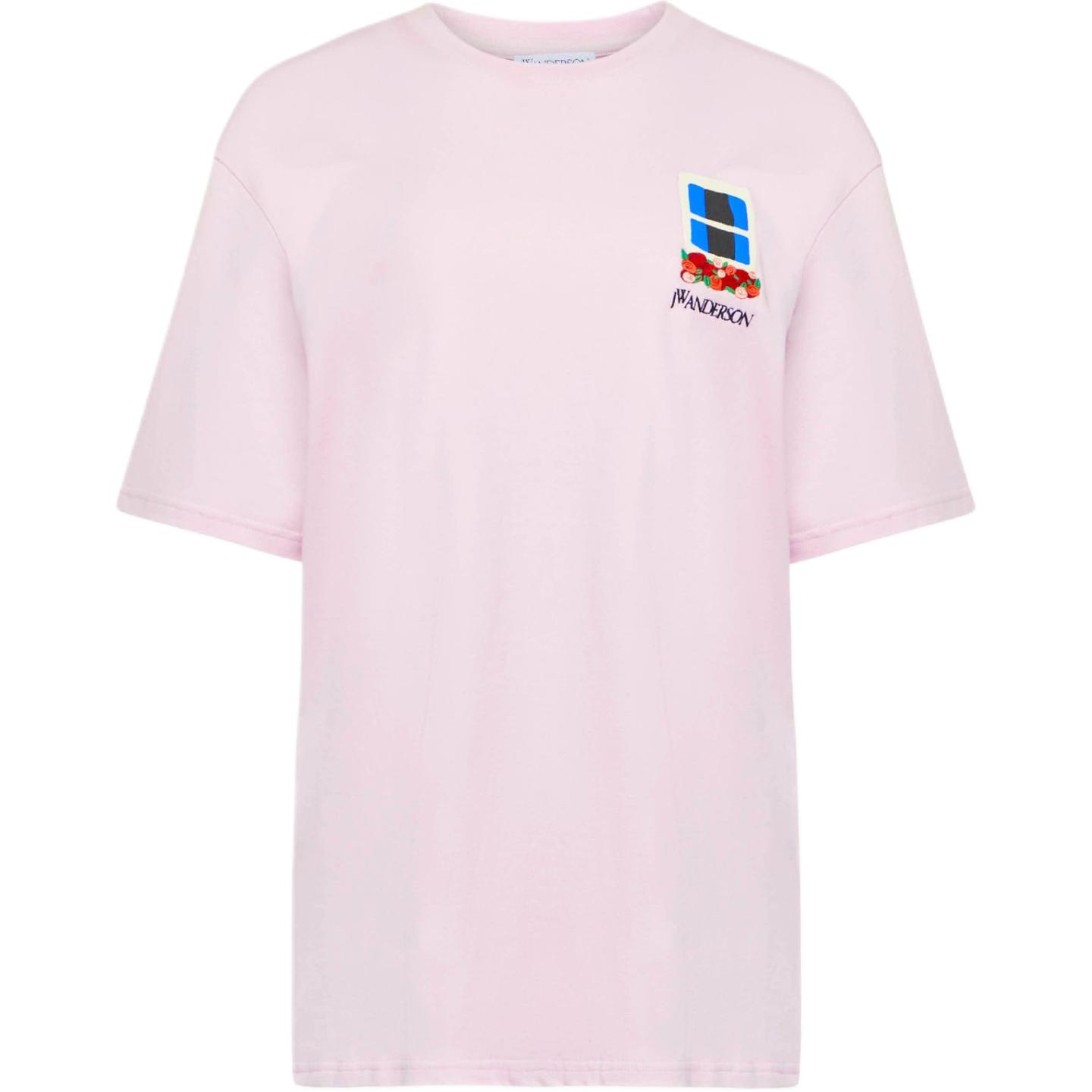 Футболка с вышивкой на рукаве JW Anderson, розовая