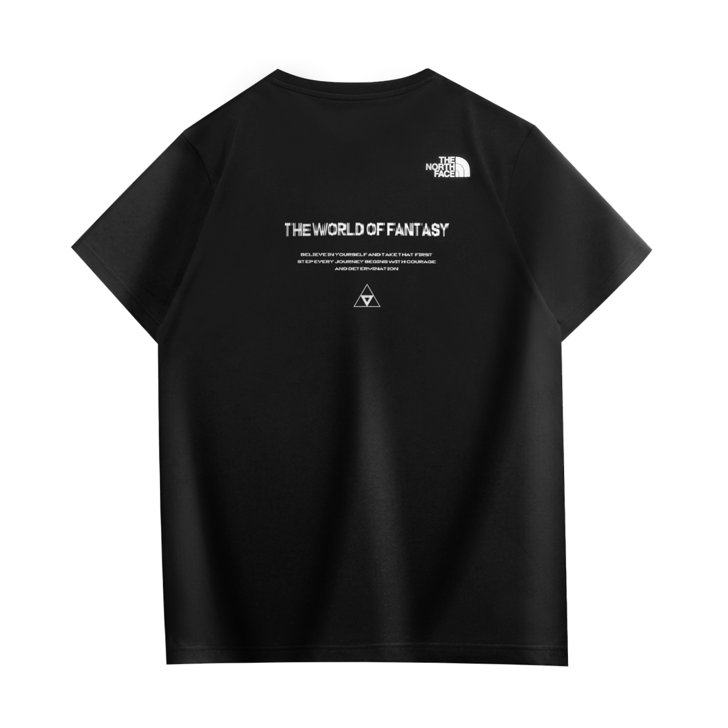 Эта чёрная однотонная футболка THE NORTH FACE с короткими рукавами, сшитая на заказ. Этот оригинальный дизайн — первый в коллекции Dewu. Благодаря изысканному принту высокой чёткости, вероятность носить такую же одежду, как у других, минимальна. Это отличный выбор для модниц.