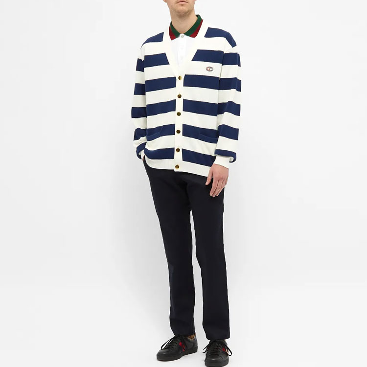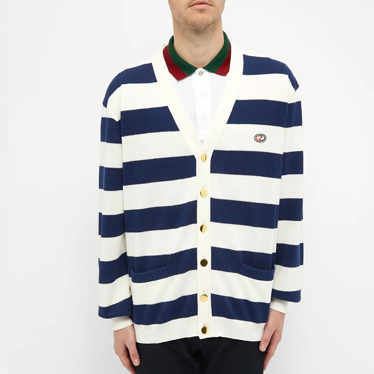 Футболка FW21 вязаная мужская синяя с белыми полосками GUCCI