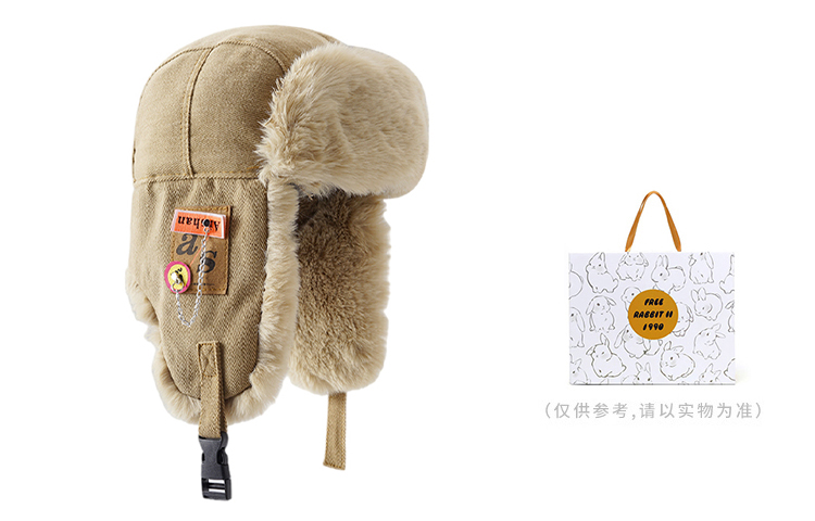 Хлопковая кепка-траппер унисекс FREE RABBITⅡ, цвет хаки и белый