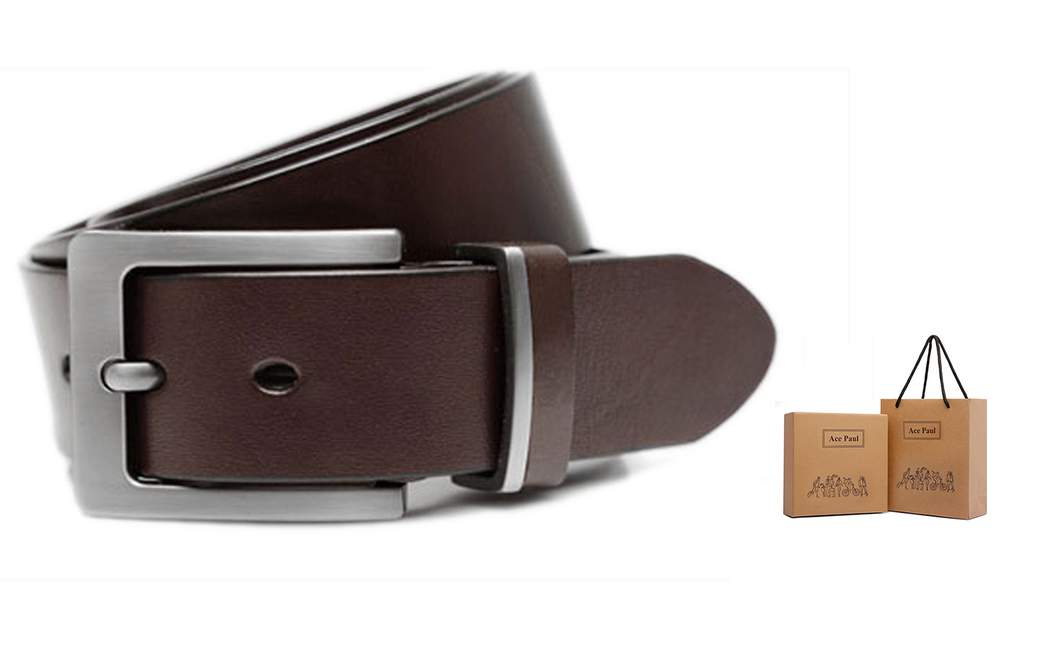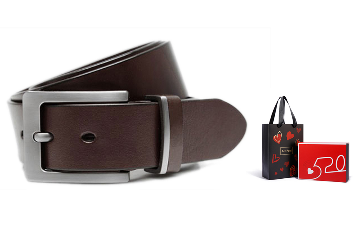 Кожаный ремень мужской Ace Paul, тёмно-кофейный, удлинённая длина 130 см