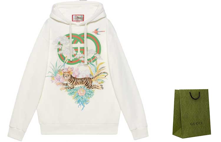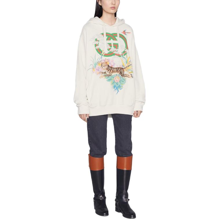 Футболка с капюшоном Gucci Tiger Interlocking G 'Бежевая' 36 498₽