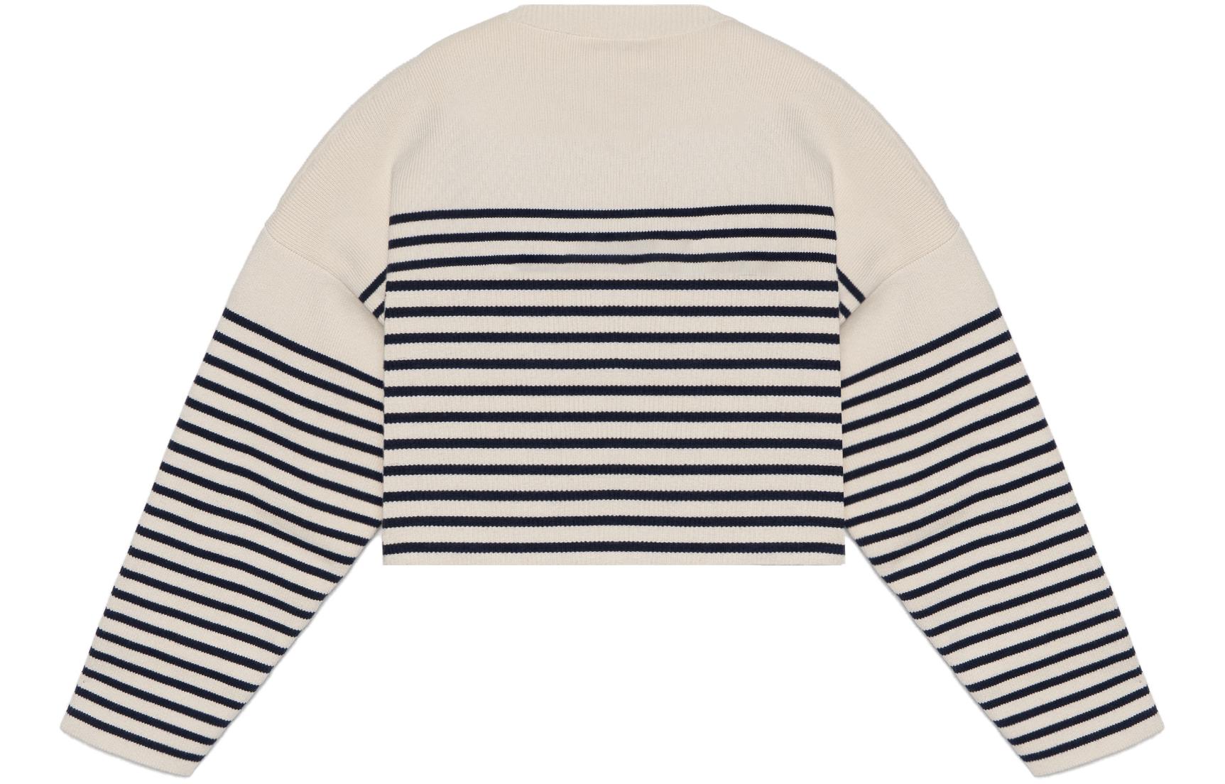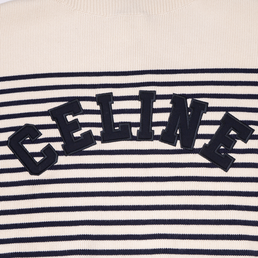 CELINE Полосатый вязаный хлопковый свитер, морской синий
