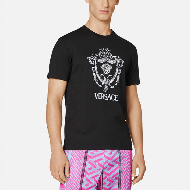 Вышитая футболка Medusa VERSACE, черная