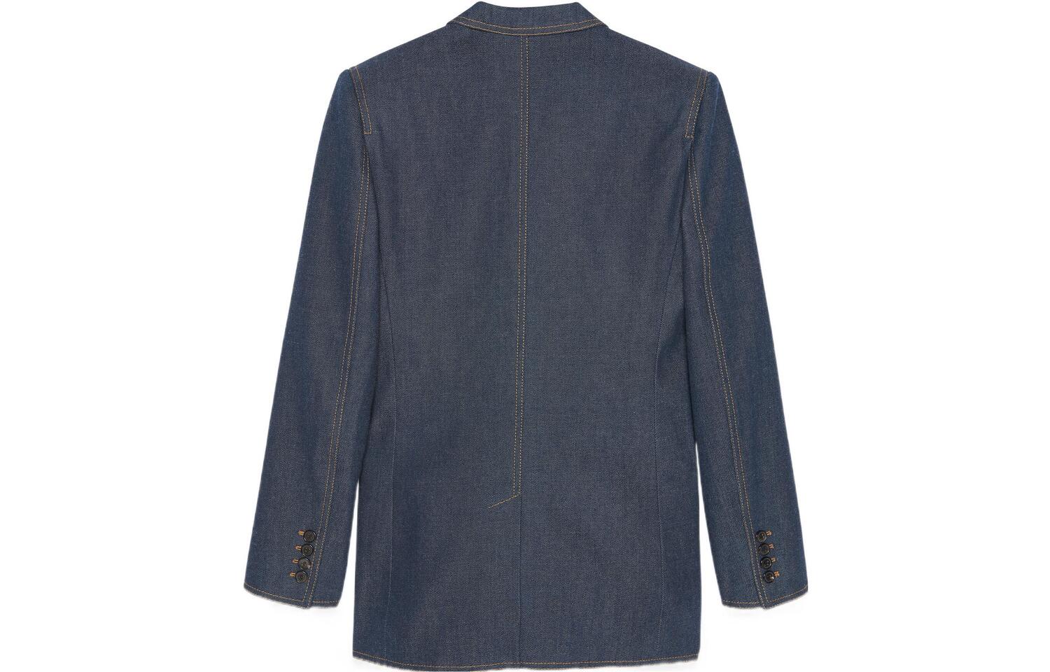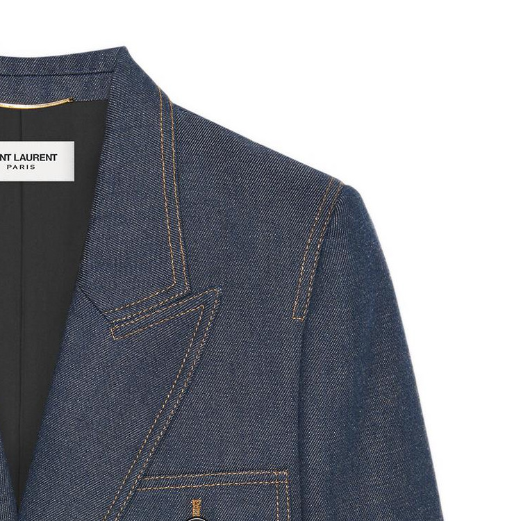 Однобортный джинсовый блейзер SAINT LAURENT, темно-синий темно-синий