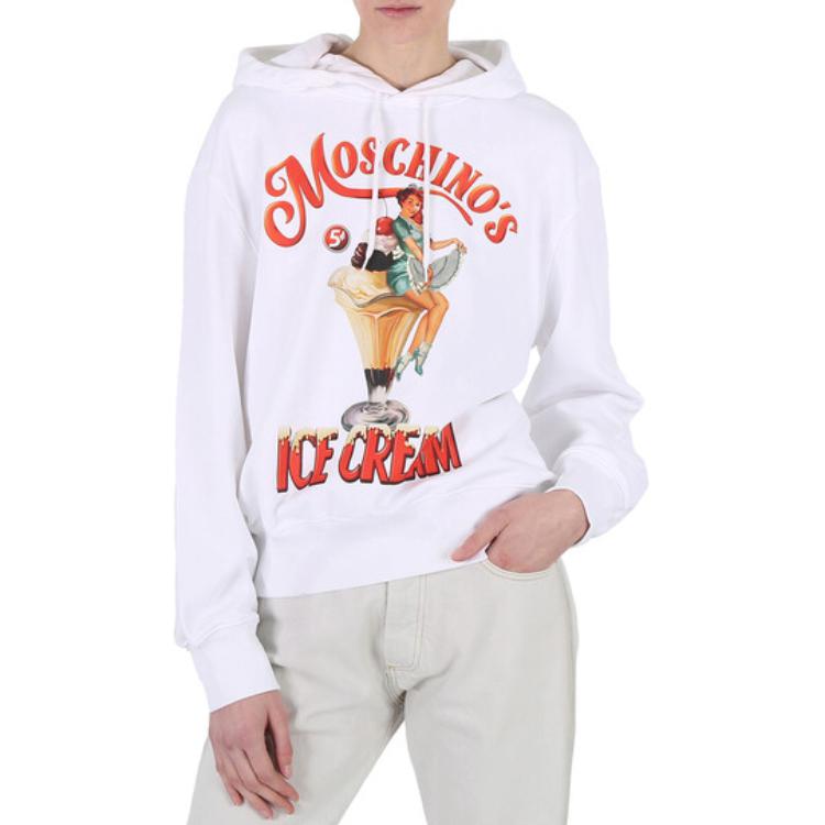 Москвино Худи с принтом логотипа и шнурком Белое