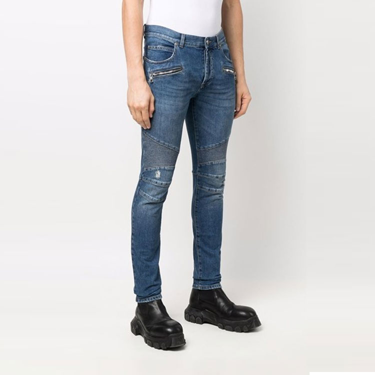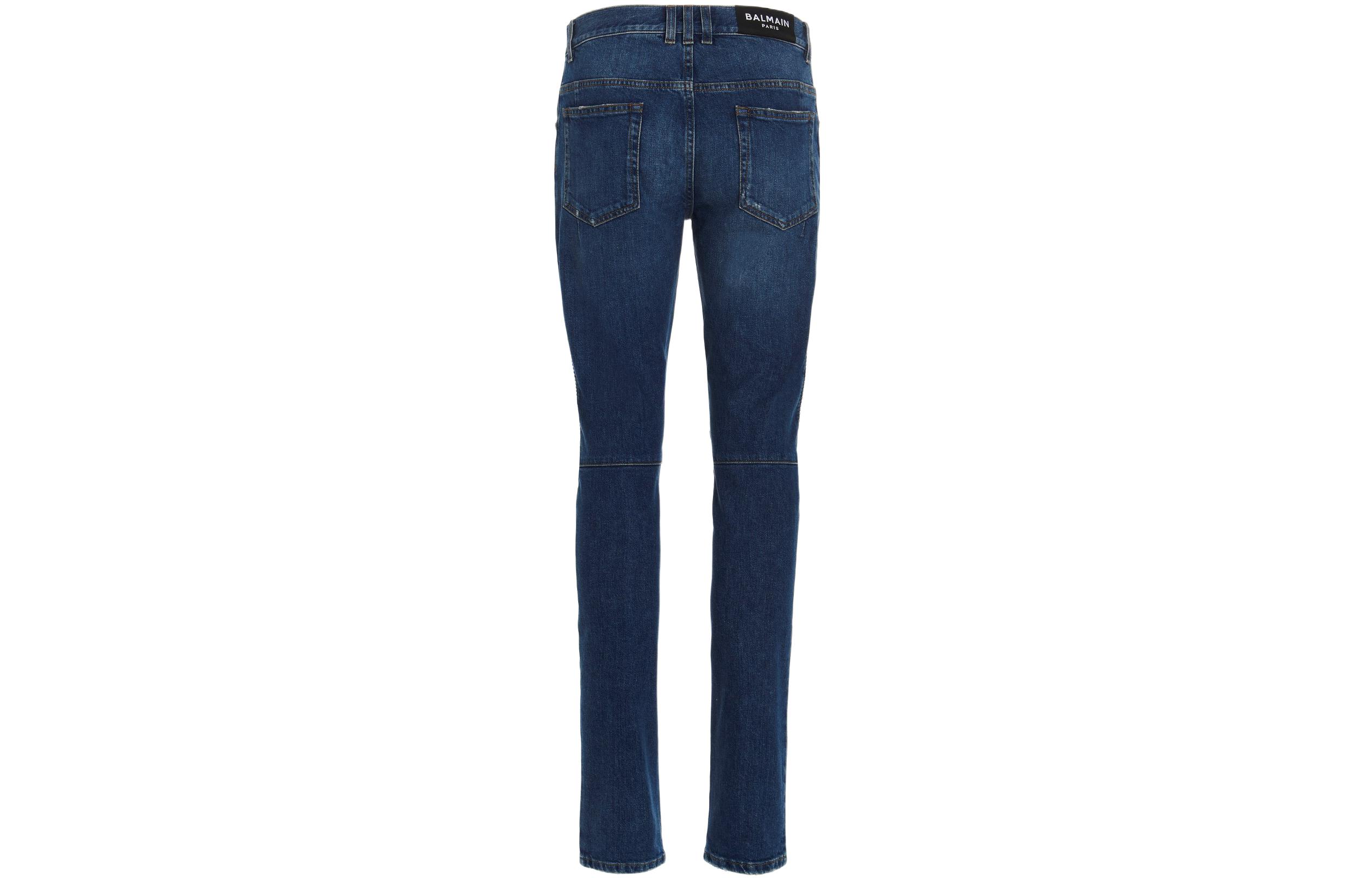Узкие джинсы с ребристой деталью BALMAIN, синие