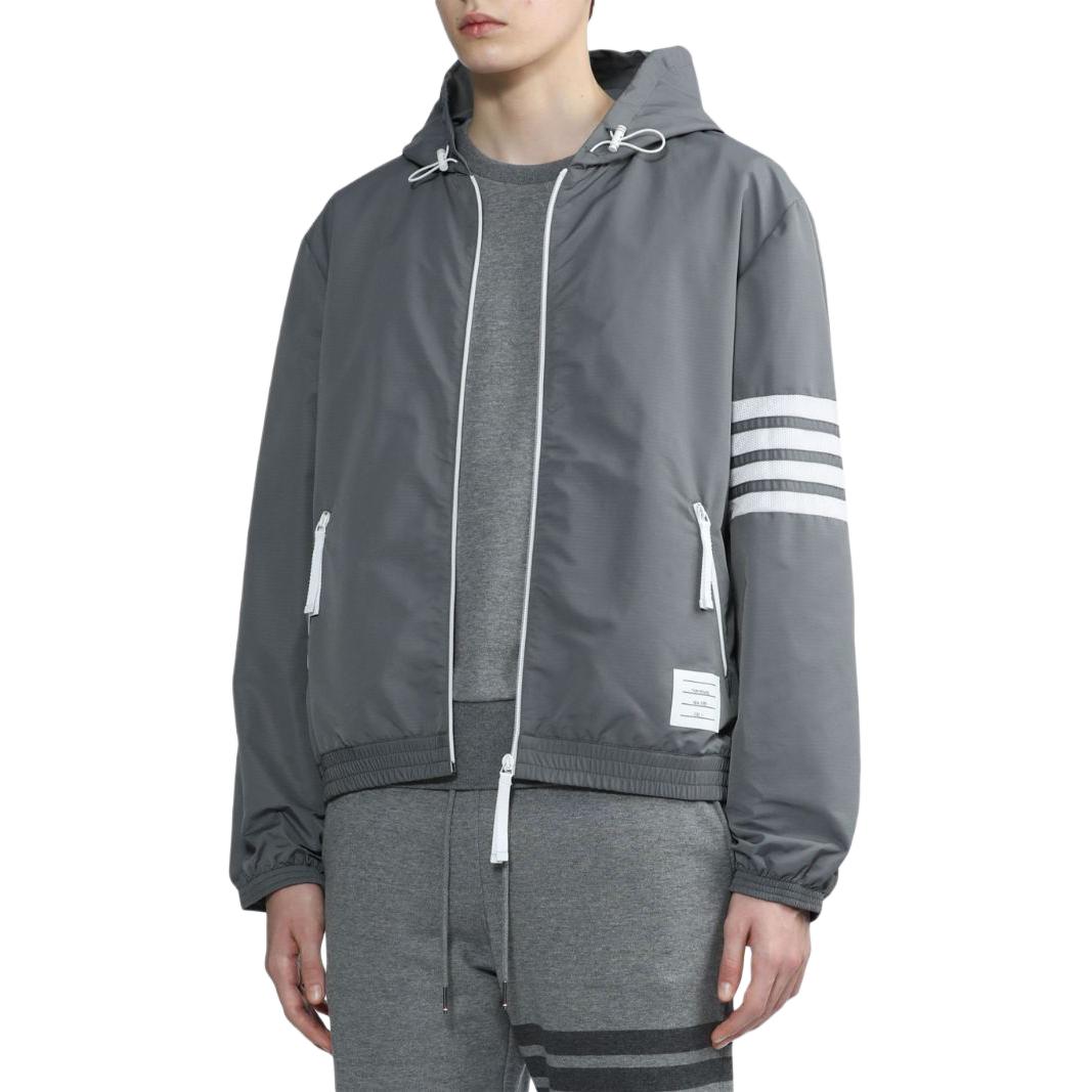 Куртка с капюшоном на молнии Ripstop Mesh 4 Bar THOM BROWNE, серая