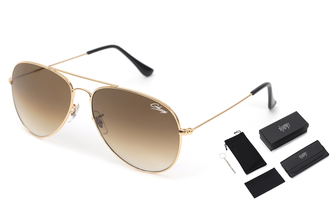 Авиаторские солнцезащитные очки Unisex KENMO, золотистая оправа с чайно-коричневыми линзами