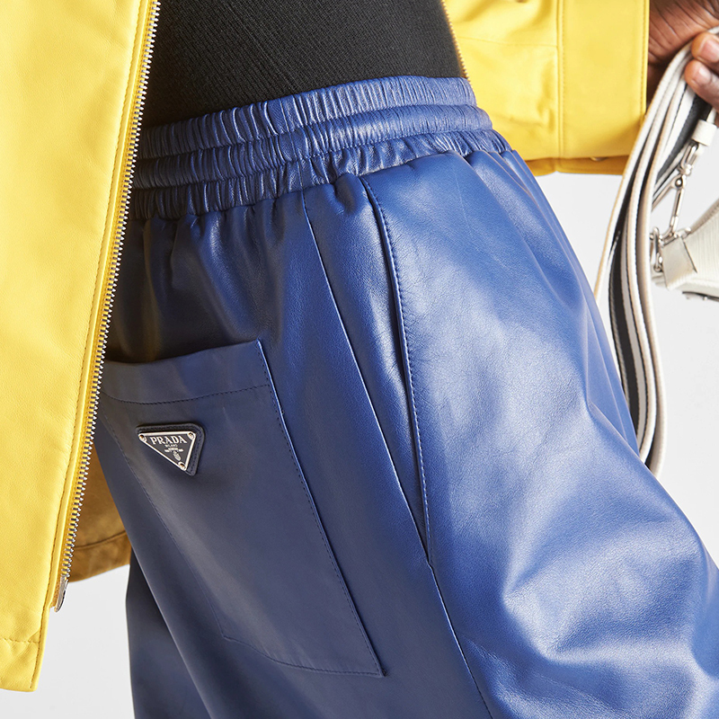 Бермуды из кожи наппа PRADA, тёмный пурпурно-синий