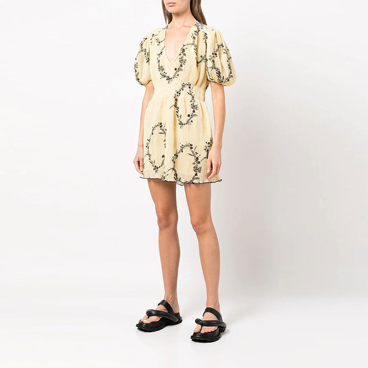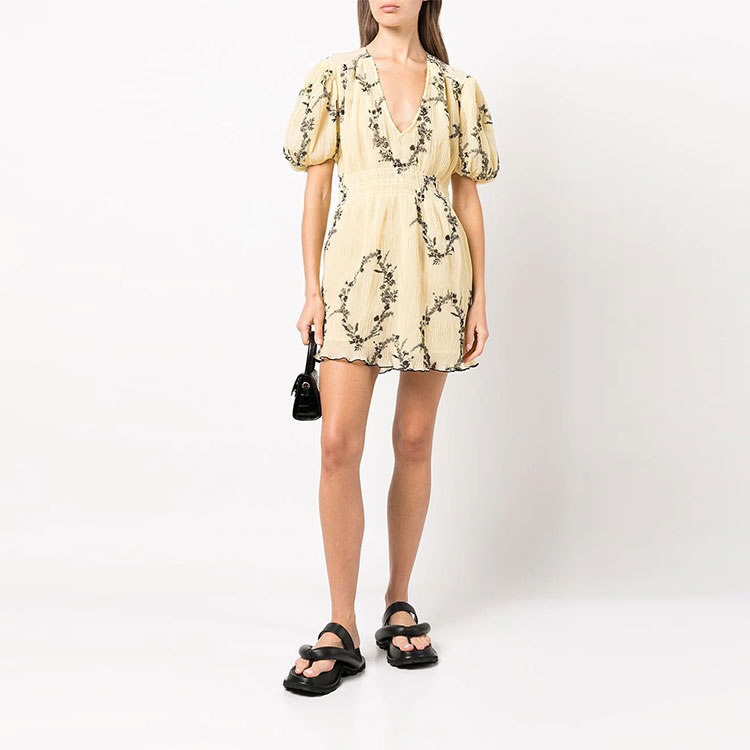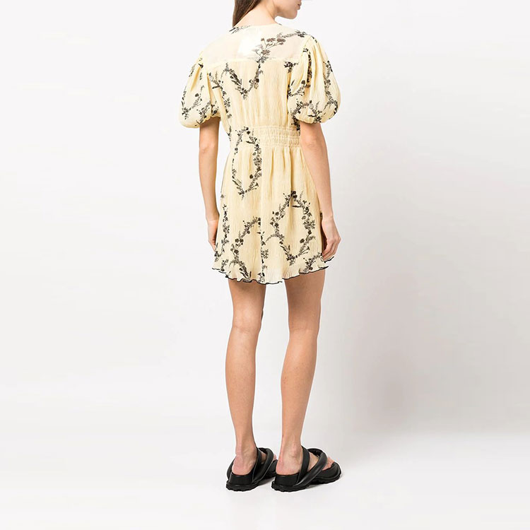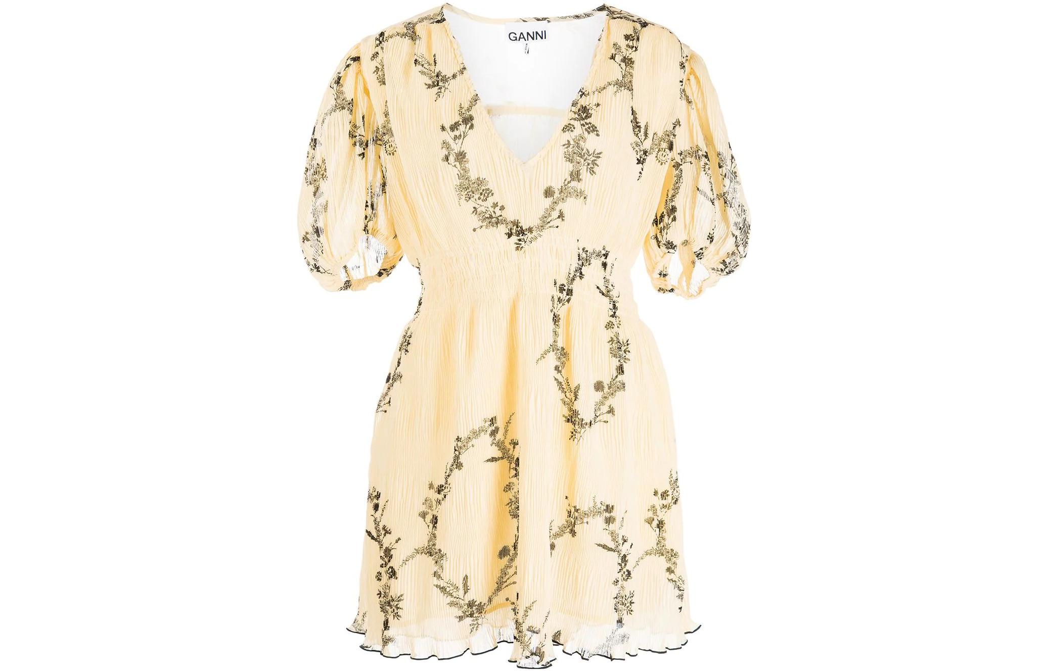 Плиссированное платье-мини из жоржета GANNI, желтое