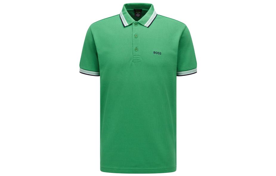 Поло с полосатым воротником HUGO BOSS, зеленый
