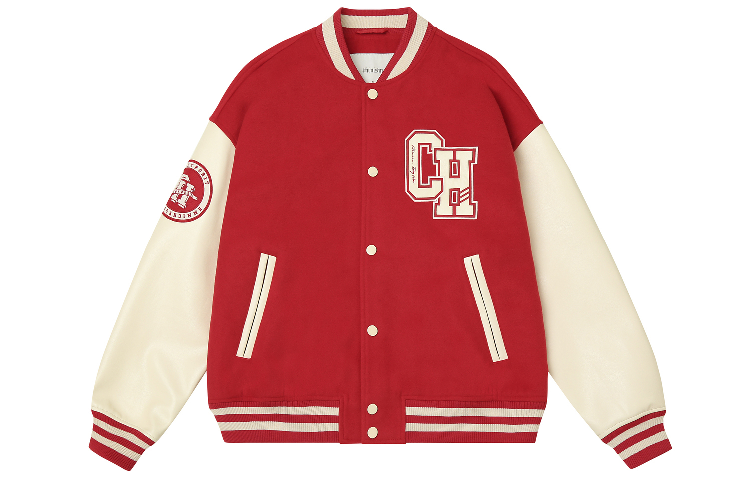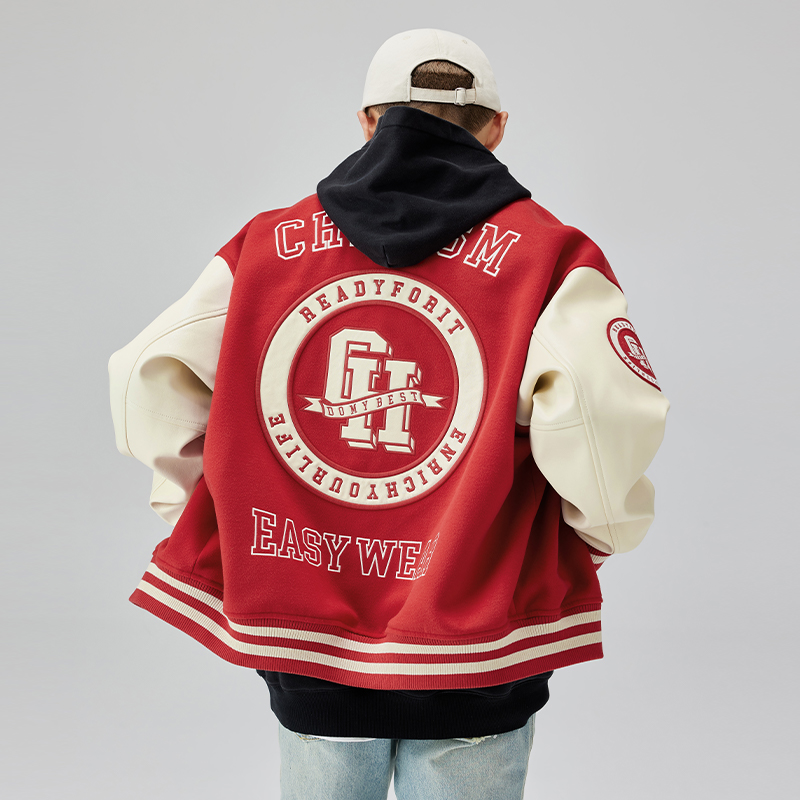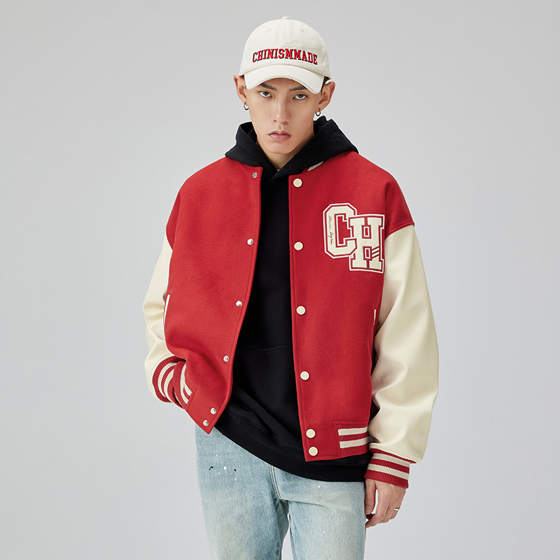 Классическая бейсбольная куртка с нашивкой Unisex CHINISM, Истинно красный