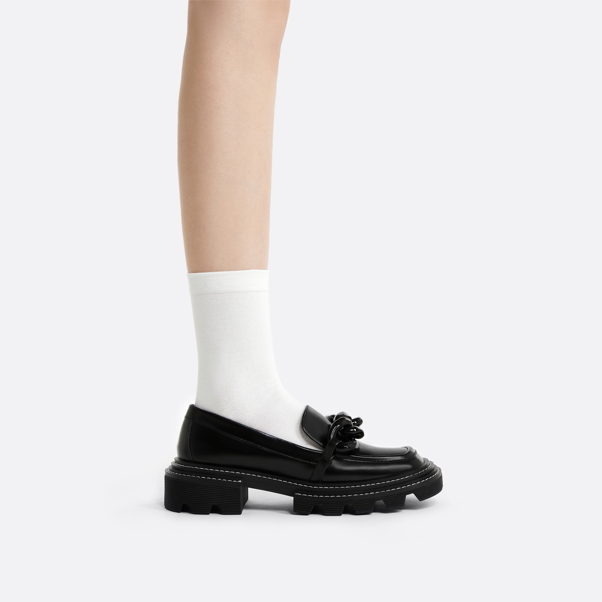 CHARLES&KEITH стремится к культуре инноваций, а его экспериментальные модели привносят новое вдохновение в мир моды. CHARLES&KEITH, бренд, стремящийся воплощать образ жизни нового поколения, расширил свою линейку продукции, включив в неё обувь, сумки, солнцезащитные очки, аксессуары и украшения, став настоящей энциклопедией моды для модниц. Толстые металлические цепи добавляют нотку стиля, а лоферы на толстой подошве с квадратным носком воплощают непринуждённый и непринуждённый дух милой и стильной девушки.