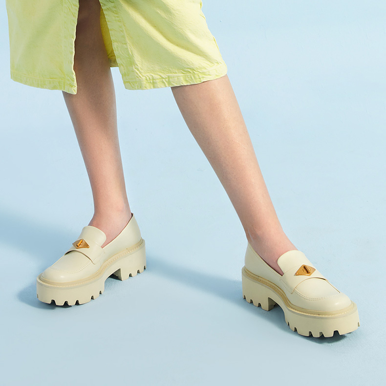 CHARLES&KEITH стремится следовать культуре инноваций, а его экспериментальные модели привносят новое вдохновение в мир моды. CHARLES&KEITH, бренд, стремящийся воплощать образ жизни нового поколения, расширил свою линейку продукции, включив в неё обувь, сумки, солнцезащитные очки, аксессуары и украшения, став настоящей энциклопедией моды для городских модниц. Верх украшен металлическими пряжками в стиле ретро, а лоферы на толстой подошве воплощают британский стиль преппи.