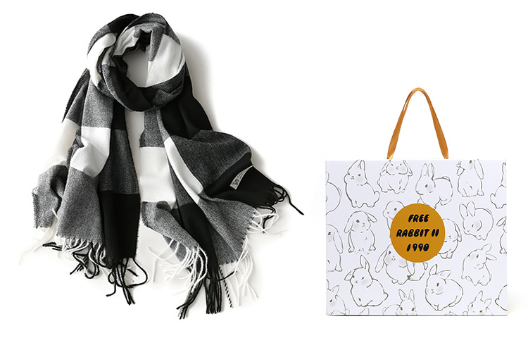 Вязаный шарф унисекс FREE RABBITⅡ, 2 шт (черный+черный)+белая коробка