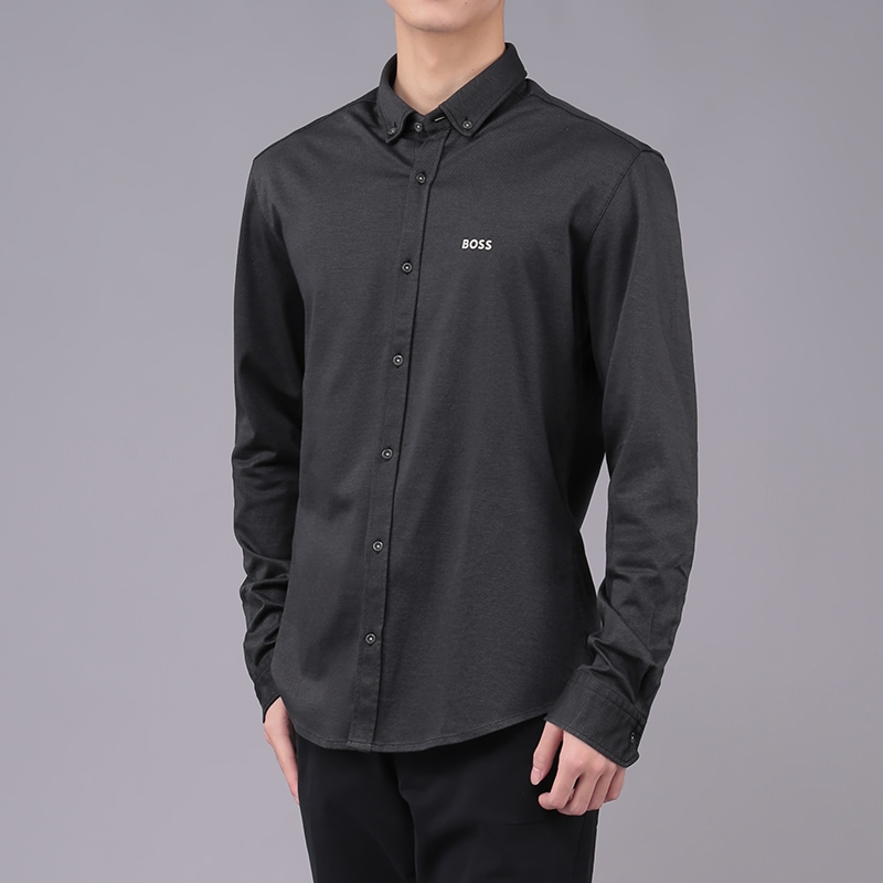 Футболка с длинным рукавом мужская черно-серая HUGO BOSS