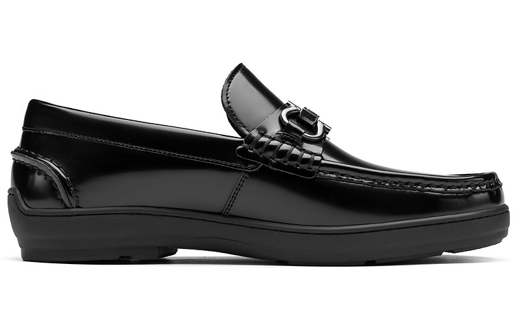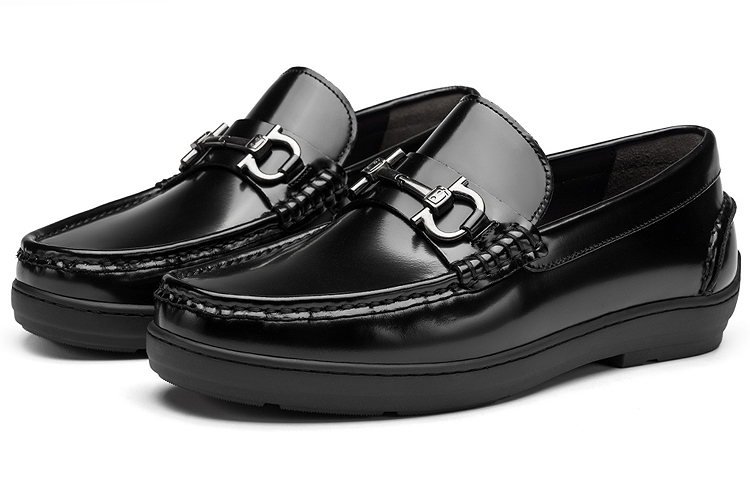 Верх изготовлен из тщательно отобранной коровьей кожи с перламутровым блеском, которая имеет насыщенный блеск и отличается прочностью; внешний дизайн украшен изысканным металлическим удилой, что стильно и просто, подчеркивая сдержанную роскошь; подошва — резиновая с четко выраженным рисунком, нескользящая, износостойкая, удобная и мягкая.