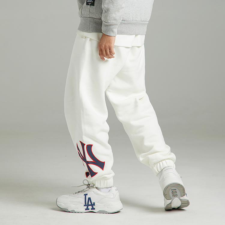 Трикотажные спортивные брюки унисекс белые MLB, бежевые