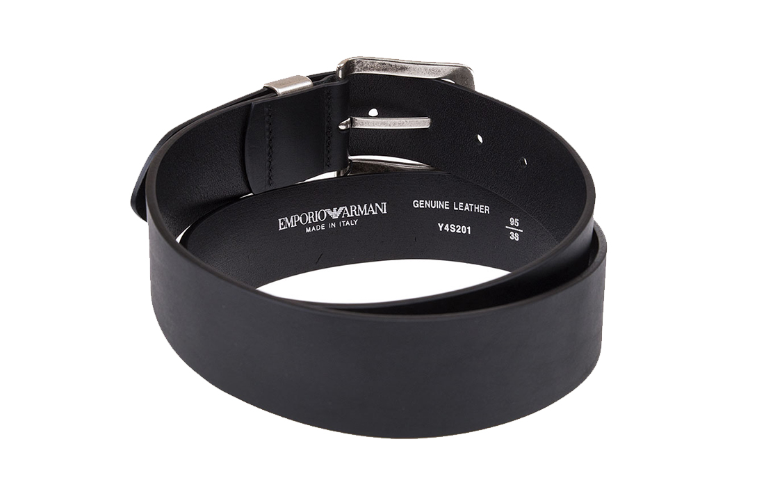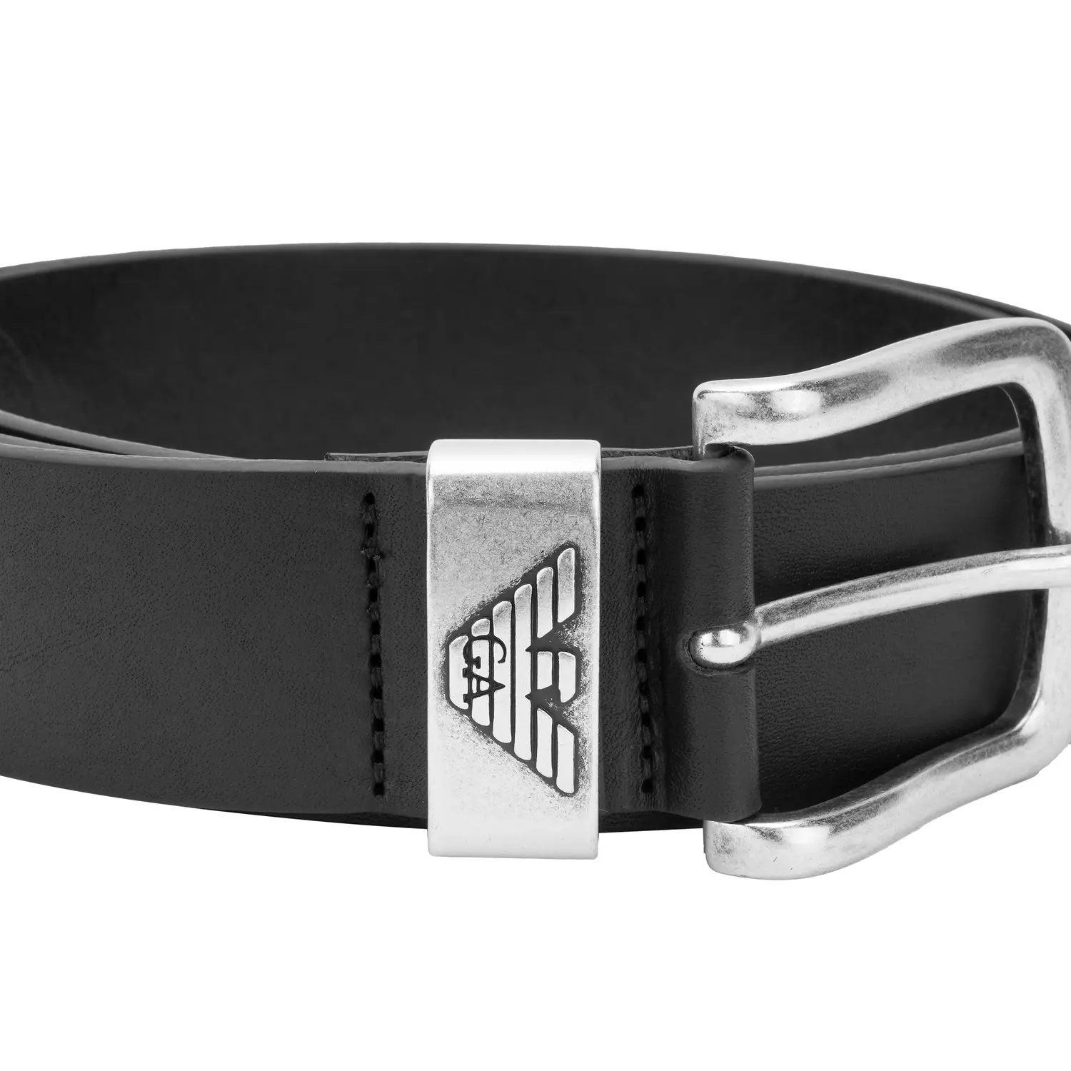 Кожаный ремень мужской черный EMPORIO ARMANI