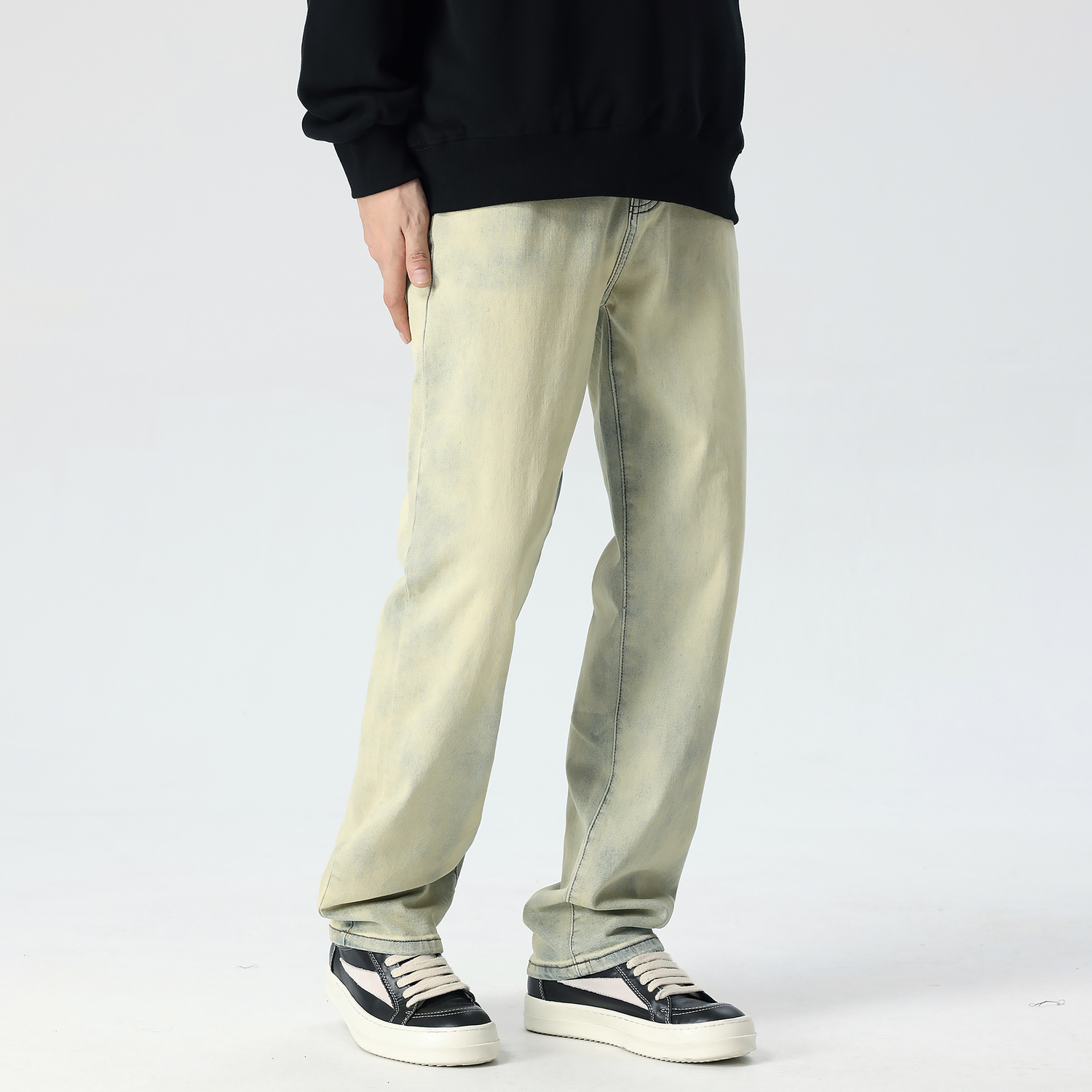 Этот продукт подвергается многократным стиркам в желтой грязи, в результате чего приобретает потертый сине-желтый оттенок. Высокое содержание хлопка в ткани делает ее удобной и приятной для кожи на каждый день. Силуэт Silm расширен и расширен, чтобы создать прямой, слегка свободный крой, который больше подходит для азиатских фигур. Сочетание его с туфлями дерби или кроссовками создает стильный и повседневный образ. Эта классическая и универсальная модель доступна в различных цветах, что позволяет легко стилизовать ее в различных случаях. Инструкции по стирке: Изделия из денима могут полинять во время стирки, и потеря цвета является нормальным явлением. Рекомендуется проветривать помещение, свободное от грязи. Стирайте загрязненные участки вручную. Не рекомендуется добавлять моющее средство (которое может содержать отбеливатель) или отбеливатель или флуоресцентные вещества. Стирайте вывернутым наизнанку и не смешивайте вещи. Избегайте прямых солнечных лучей. Изменение цвета: цвет изделия может незначительно отличаться из-за процесса стирки. Продуманный дизайн: Все джинсы продаются с петлями (не для перепродажи). Особые требования к качеству: молнии могут быть изношены и ржаветь из-за стирки, а края карманов и подгибы могут иметь разную степень необработанности.