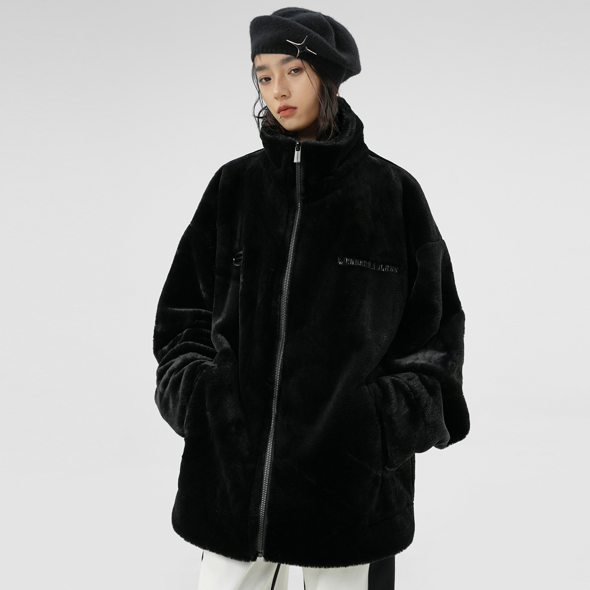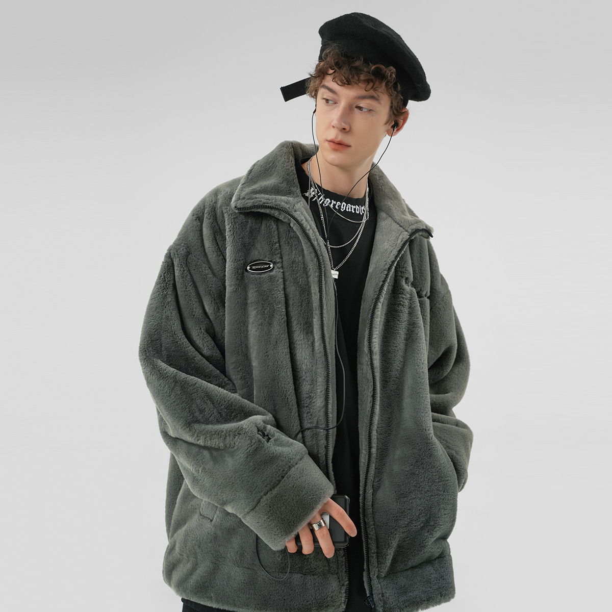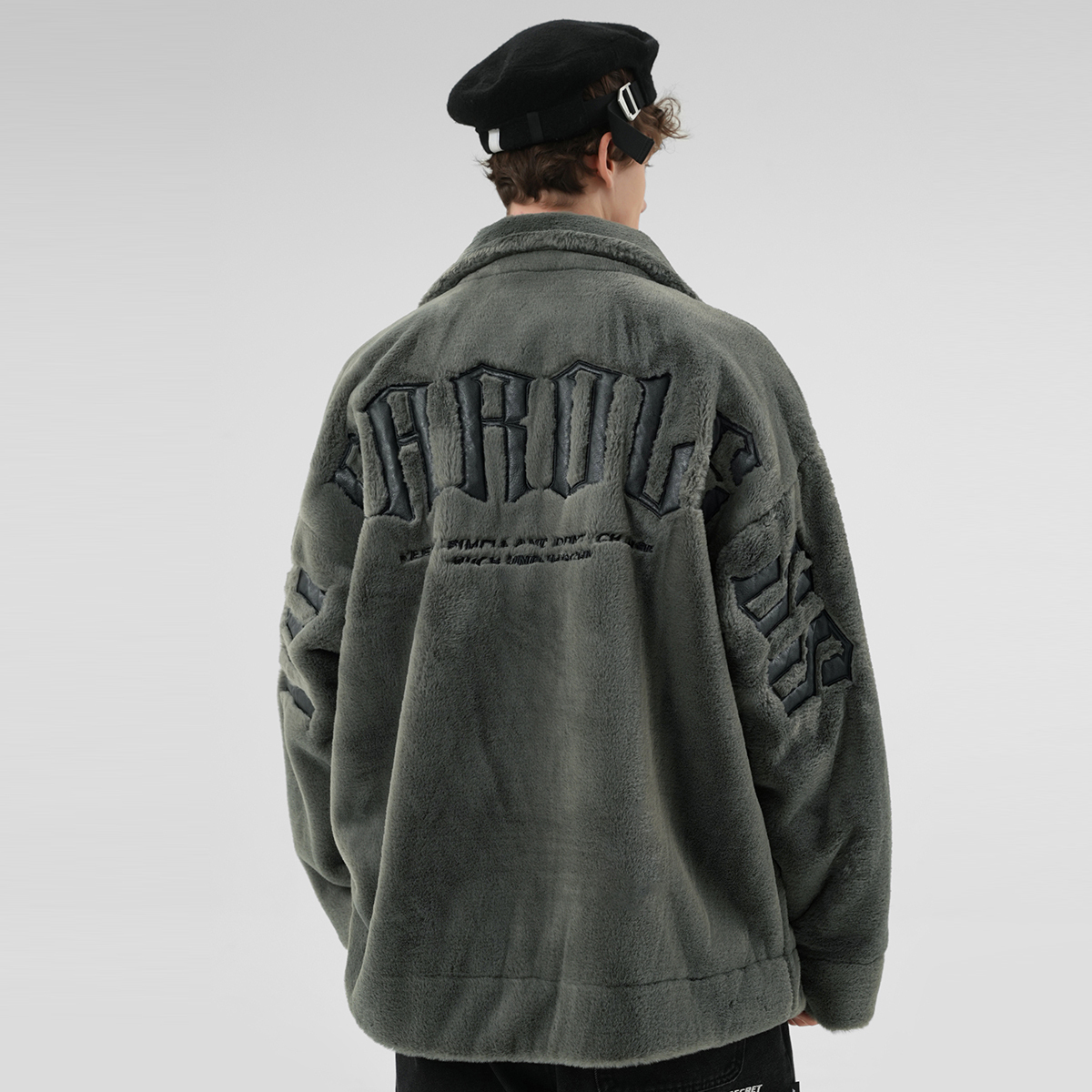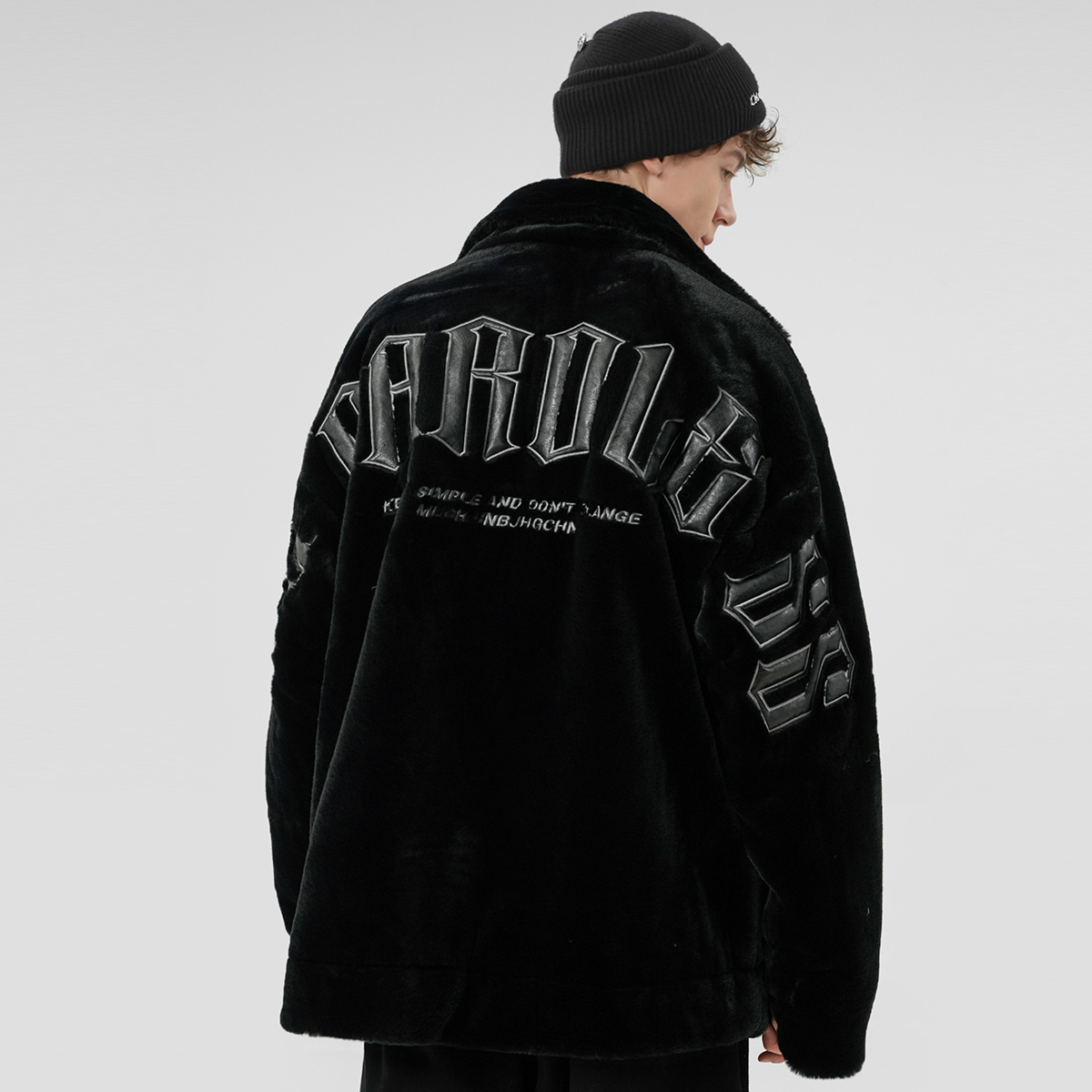 Грудь украшена металлической табличкой, а горизонтальный слоган на спине вышит прочной кожей, что отражает уличный стиль и дизайн изделия. Свободная модель oversize со спущенным плечом не стесняет движений и отличается повышенной комфортностью и универсальностью. Высококачественный искусственный флис отличается плотной текстурой, мягкостью и нежностью на ощупь, обеспечивая тепло и комфорт в верхней части тела.