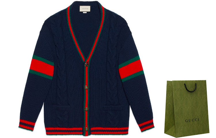 Кардиган ажурной вязки GUCCI, темно-синий