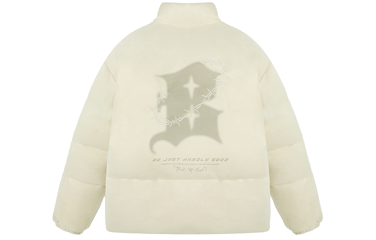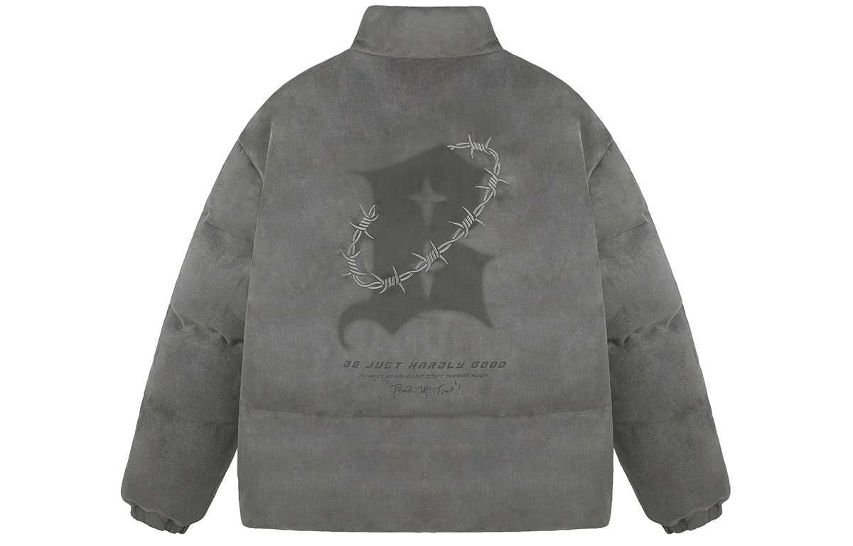 Темный принт логотипа спереди и сзади сочетается с вышитым изображением шипов, подчеркивая объемность и многослойность изделия. Свободная модель oversize со спущенным плечом не стесняет движений и отличается большей терпимостью и разнообразием вариантов ношения. Высококачественная композитная замша плотностью 220 г/м² изготовлена из отборного материала и наполнена высококачественным шёлком. Она имеет плотную текстуру, мягка и шелковиста на ощупь, сохраняя тепло и комфорт верхней части тела.