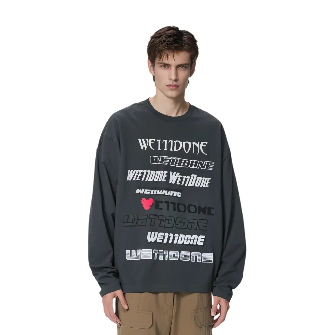 Футболка из хлопка с принтом логотипа WE11DONE, серая 17 669₽