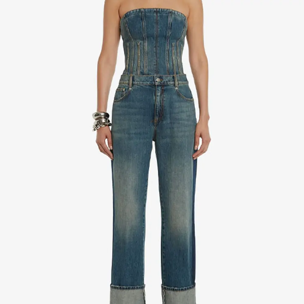 Бюстье из денима Alexander McQueen, синий деним 21 018₽
