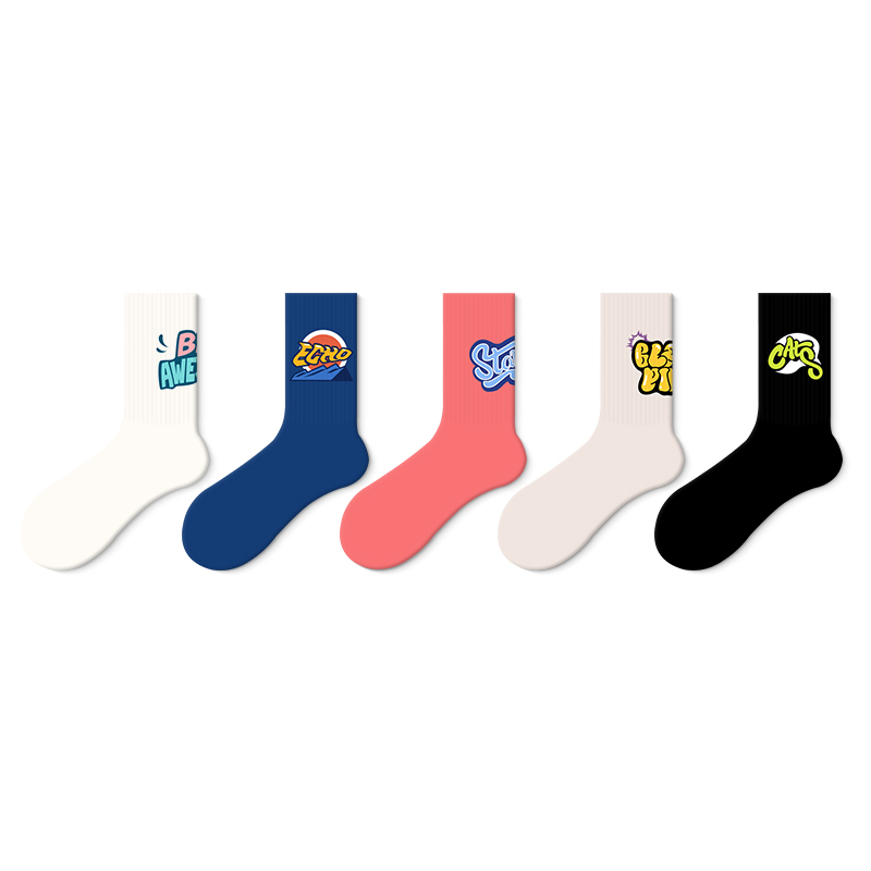 Унисекс носки до середины икры JKN, 5 пар (Набор с буквенной иллюстрацией А)