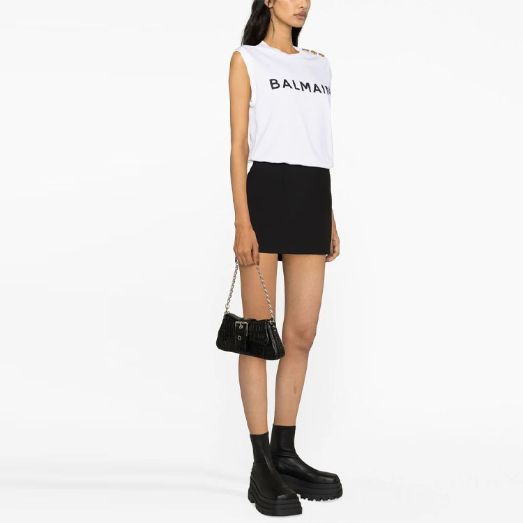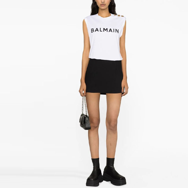 Футболка без рукавов с принтом логотипа BALMAIN, белая
