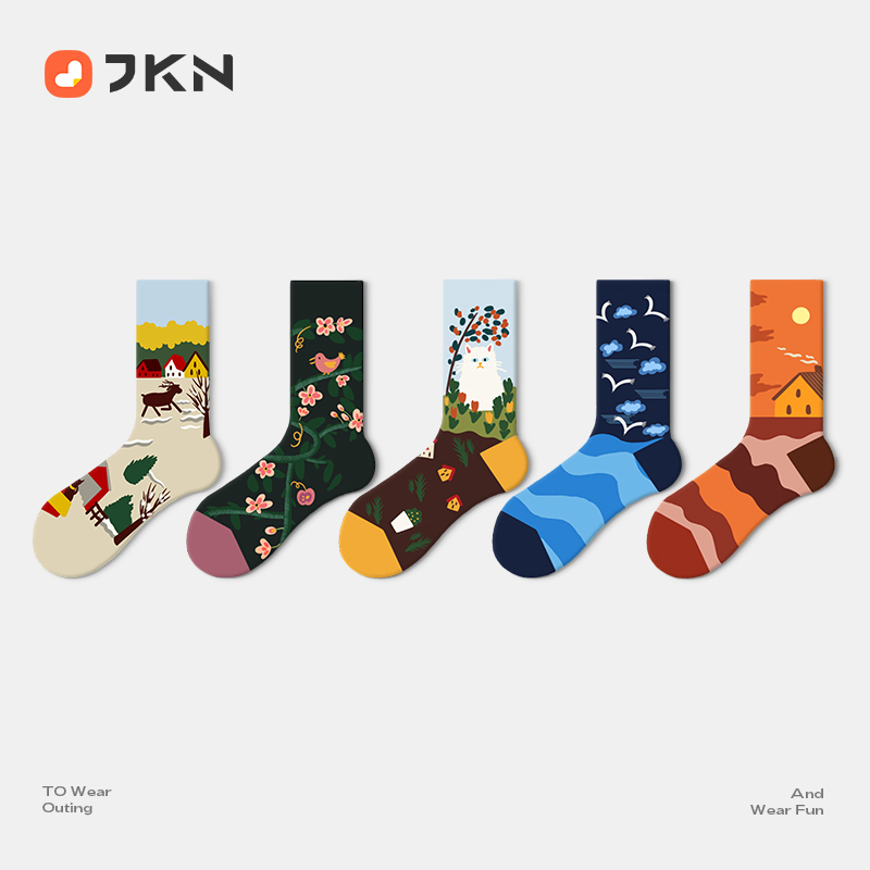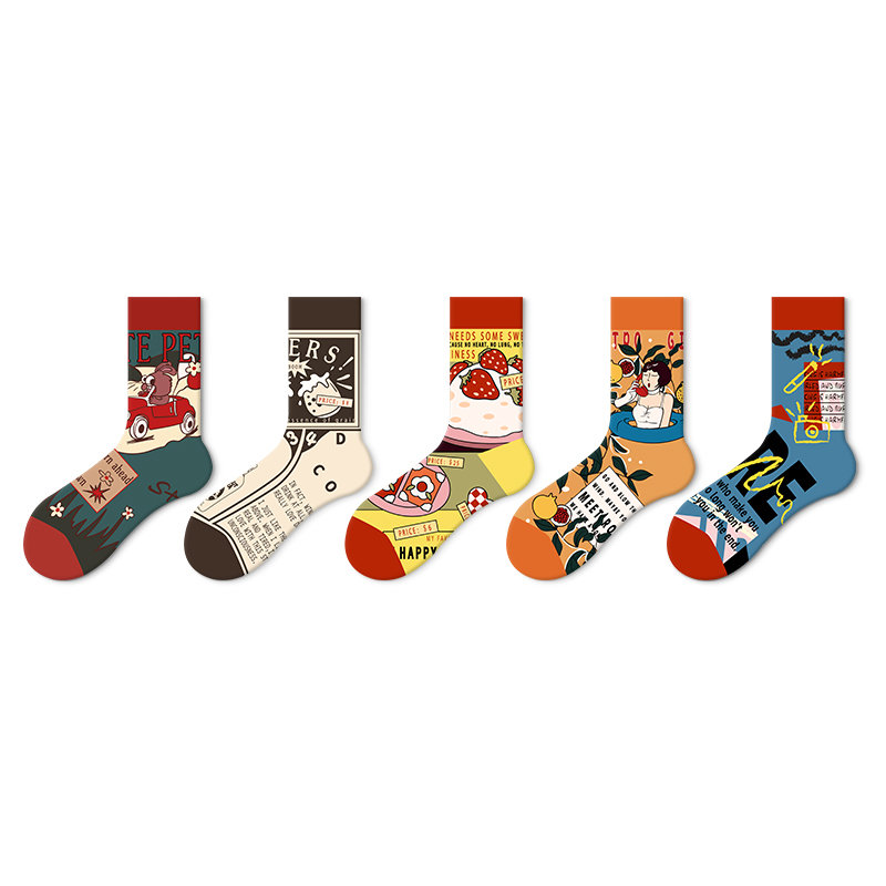 Унисекс носки до середины икры JKN, 5 пар (с мультяшными надписями) 1 310₽