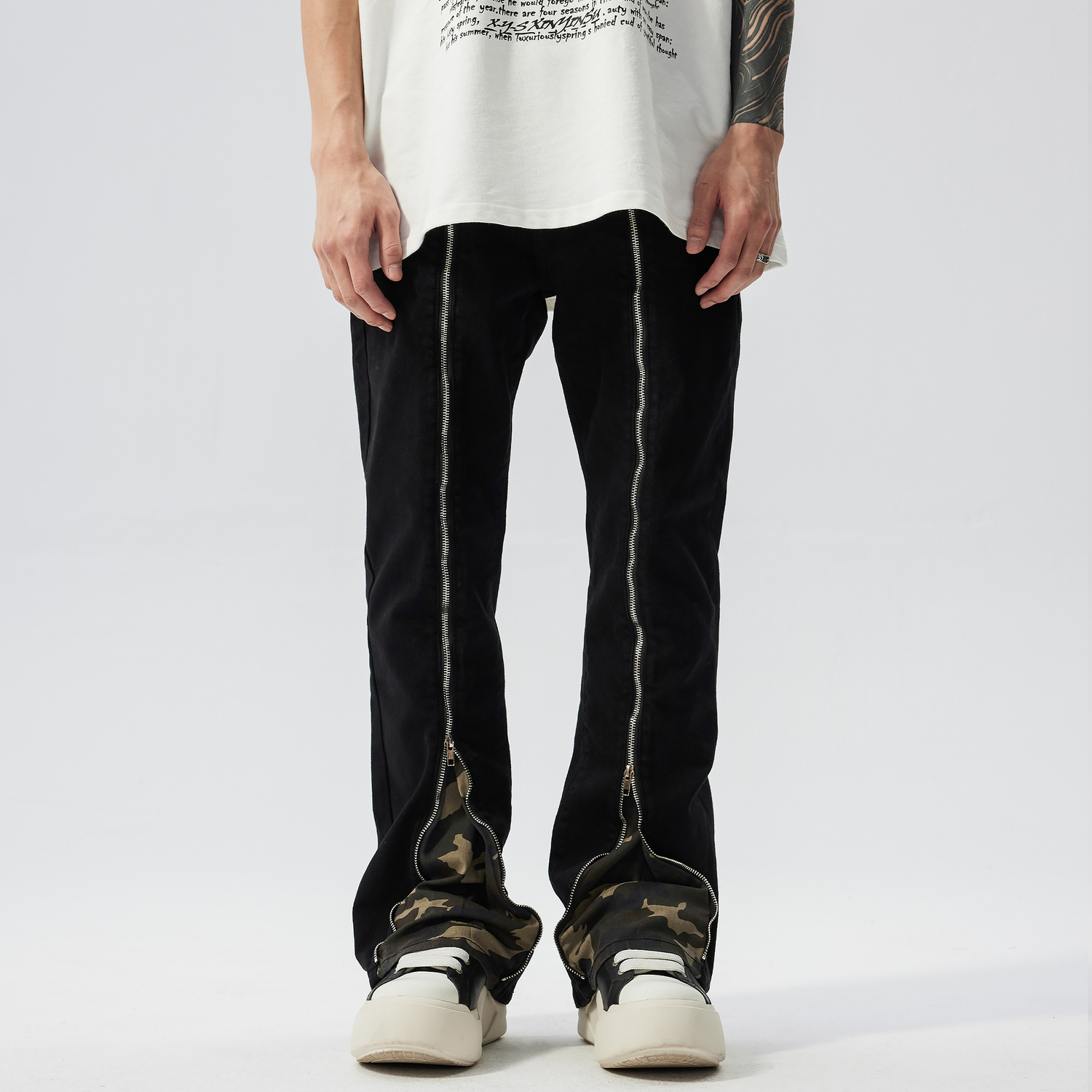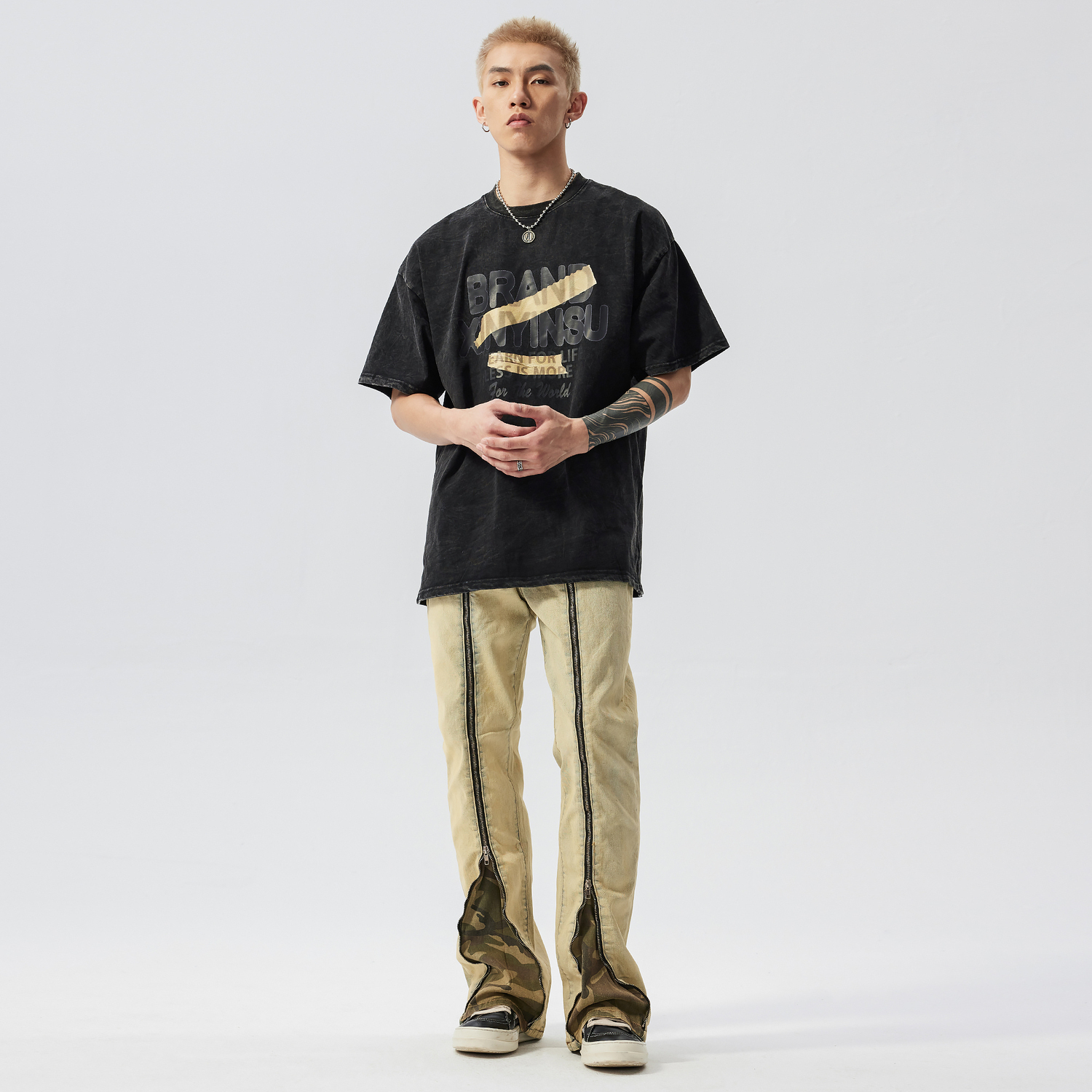 Инструкция по стирке: Джинсовые изделия могут полинять во время стирки, потеря цвета — это нормально. Рекомендуется проветривать джинсы, чтобы удалить загрязнения. Стирайте загрязненные места вручную. Не добавляйте моющие средства (которые могут содержать отбеливатели), отбеливатель или флуоресцентные вещества. Стирайте вывернутыми наизнанку и не смешивайте с другими видами стирки. Избегайте попадания прямых солнечных лучей. Разница в цвете: Изделие проходит процесс стирки, и цвет может незначительно отличаться. Продуманный дизайн: Все джинсы продаются с петлями (не для перепродажи). Особая обработка: Молнии могут быть изношены и ржаветь из-за стирки, а края карманов и штанин могут иметь разную степень необработанности.