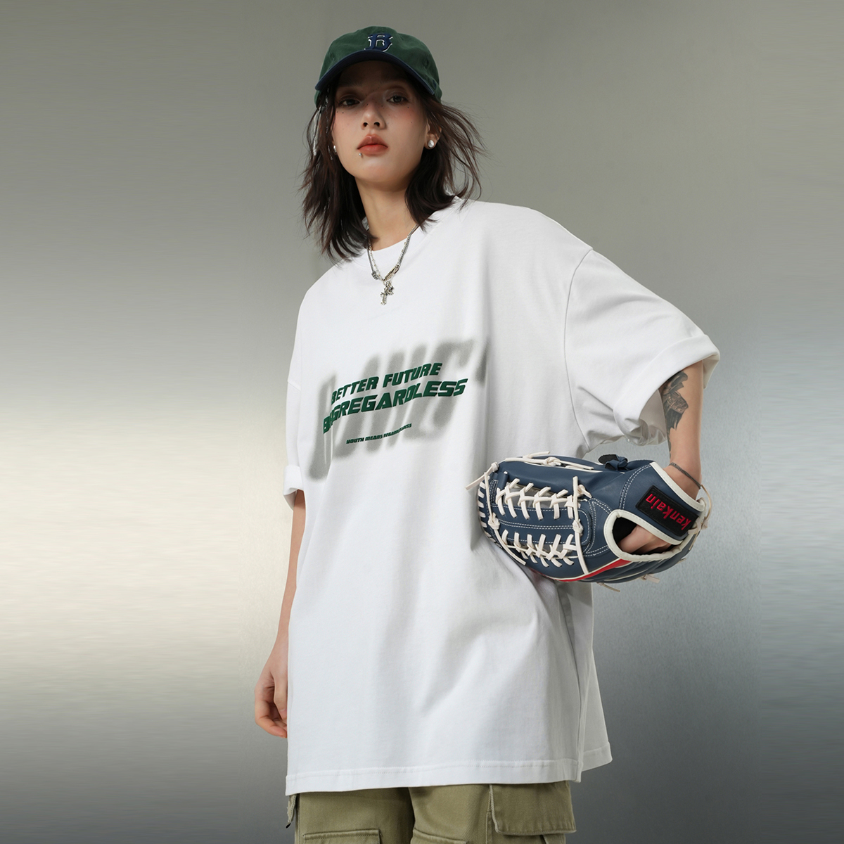 Призрачный логотип и контрастный принт с надписью из пеноматериала на груди подчёркивают узнаваемость бренда и усиливают многослойность изделия. Свободный фасон с приспущенным плечом не стесняет движений и обеспечивает комфорт и разнообразие вариантов ношения. Плотная ткань из синьцзянского хлопка плотностью 255 г/м² выбрана за её плотную текстуру, мягкость и нежность на ощупь, влагоотводящие и дышащие свойства, а также приятные к телу ощущения.