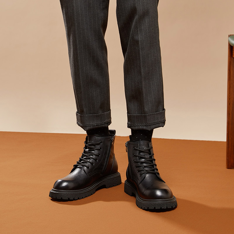 Ботинки Мартин мужские удлиненные до щиколотки HARSON, коричневые (на флисовой подкладке)