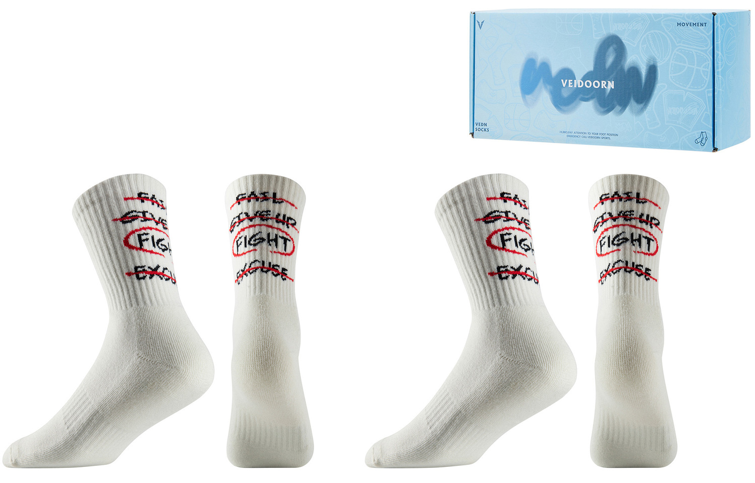 Высокие носки унисекс 2 пары VEIDOORN, 2 пары (Белые с рогами демона + Чёрные)