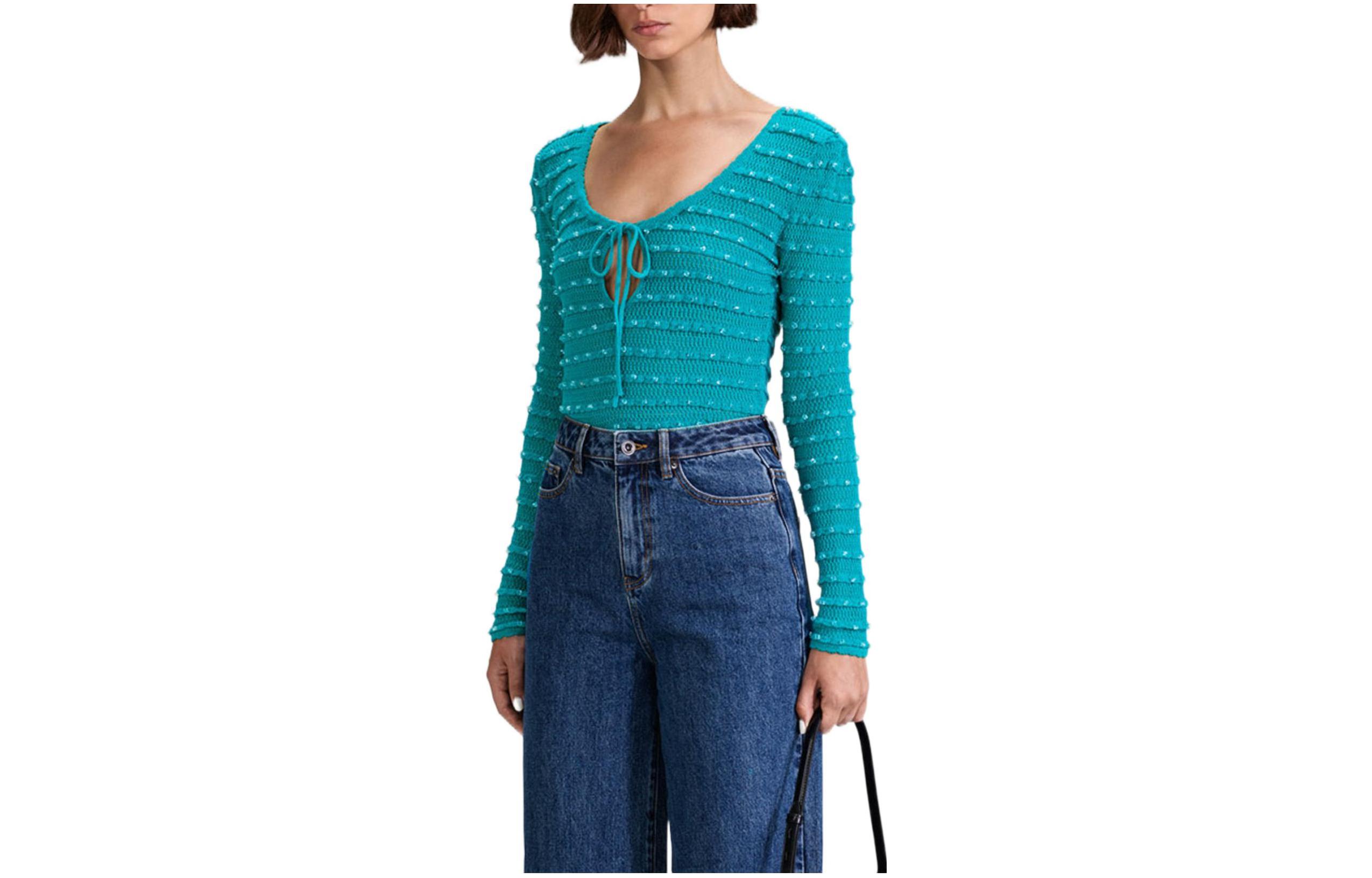 Трикотажная бирюзовая футболка Self-portrait 47 448₽