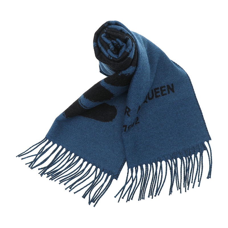 Шарф вязаный унисекс темно-синий Alexander McQueen