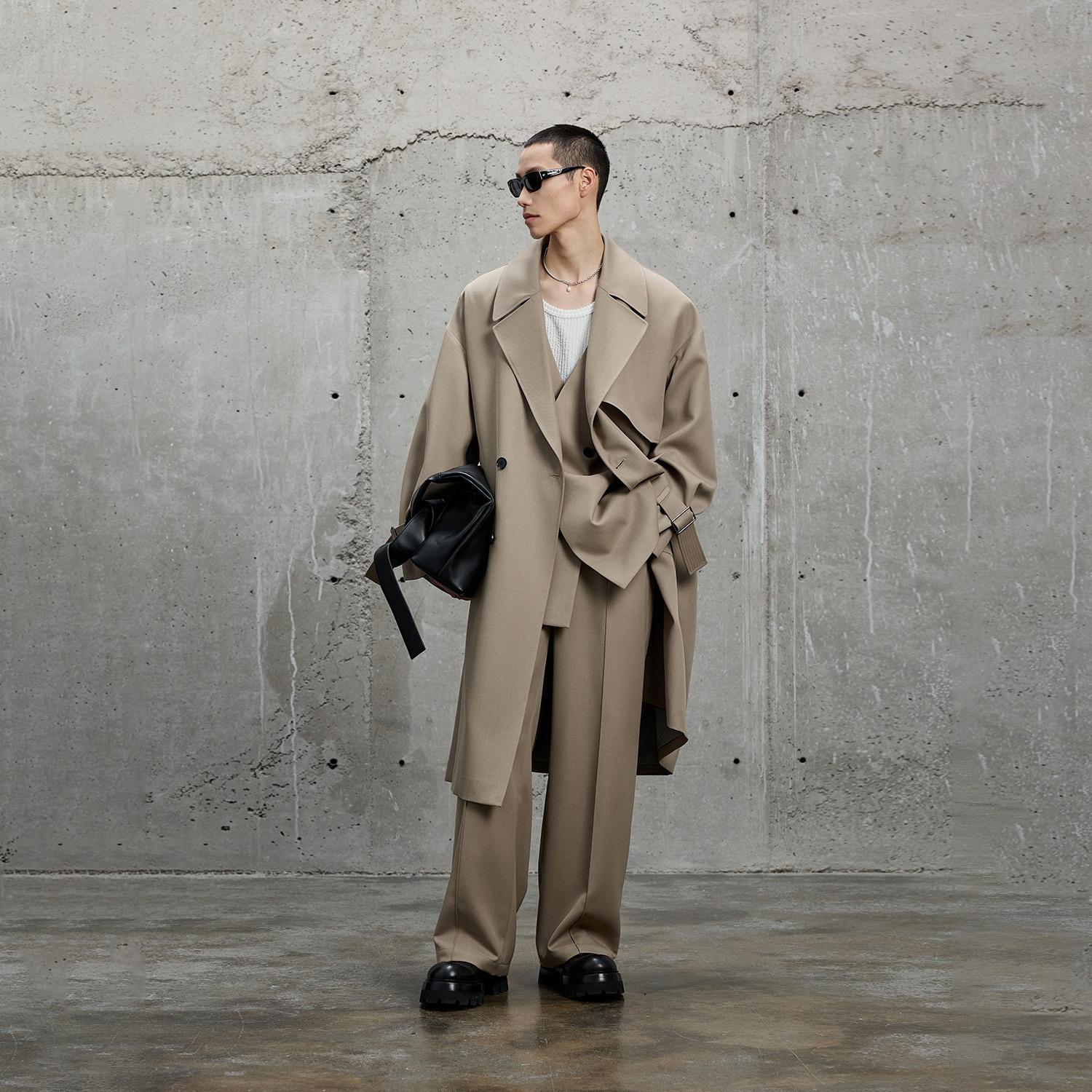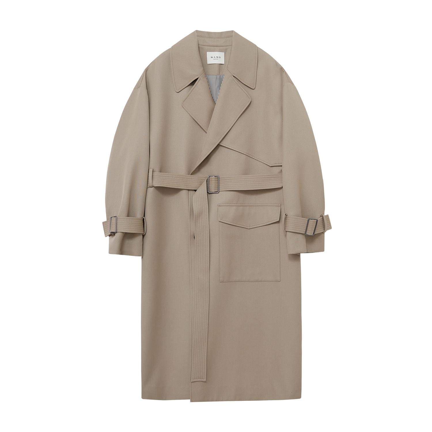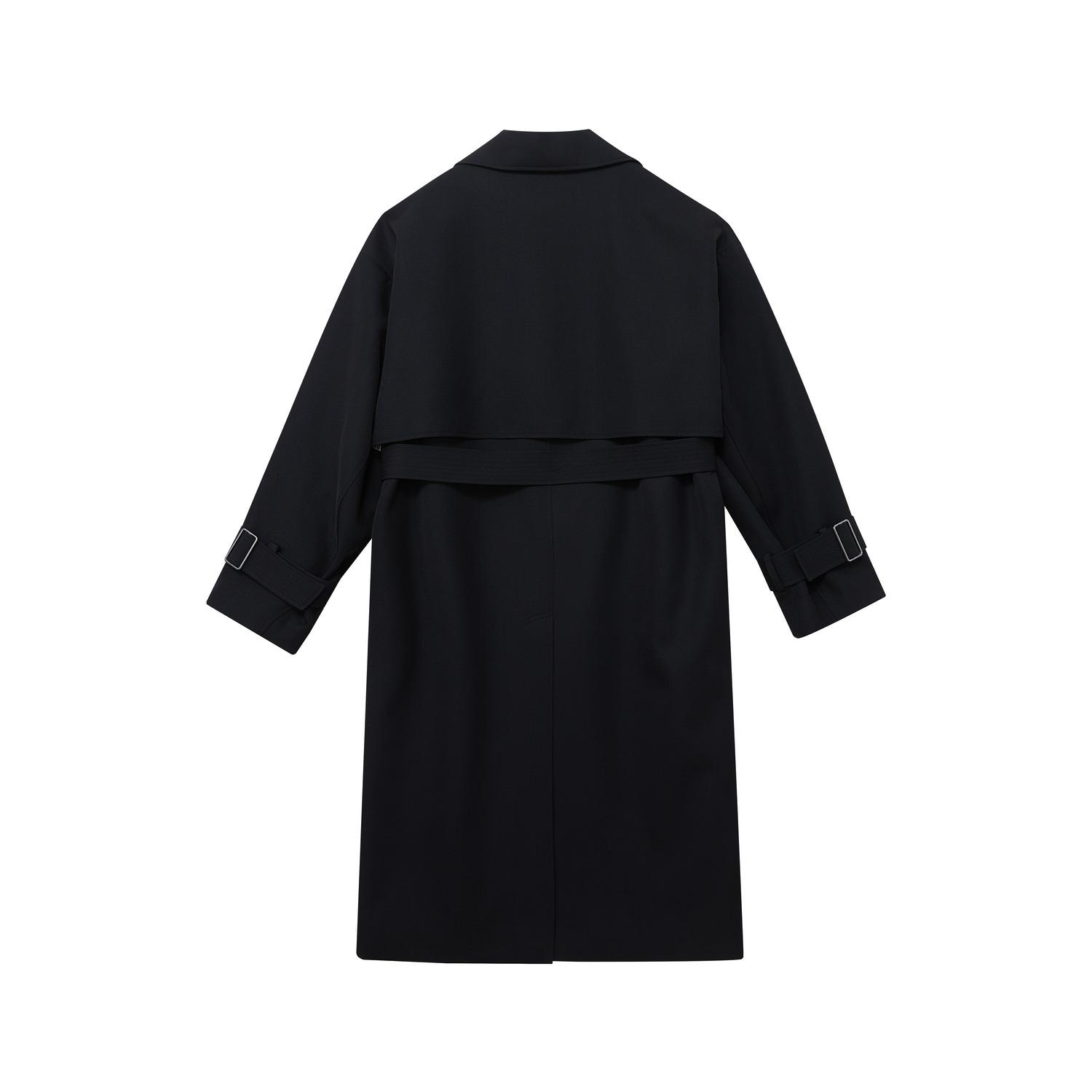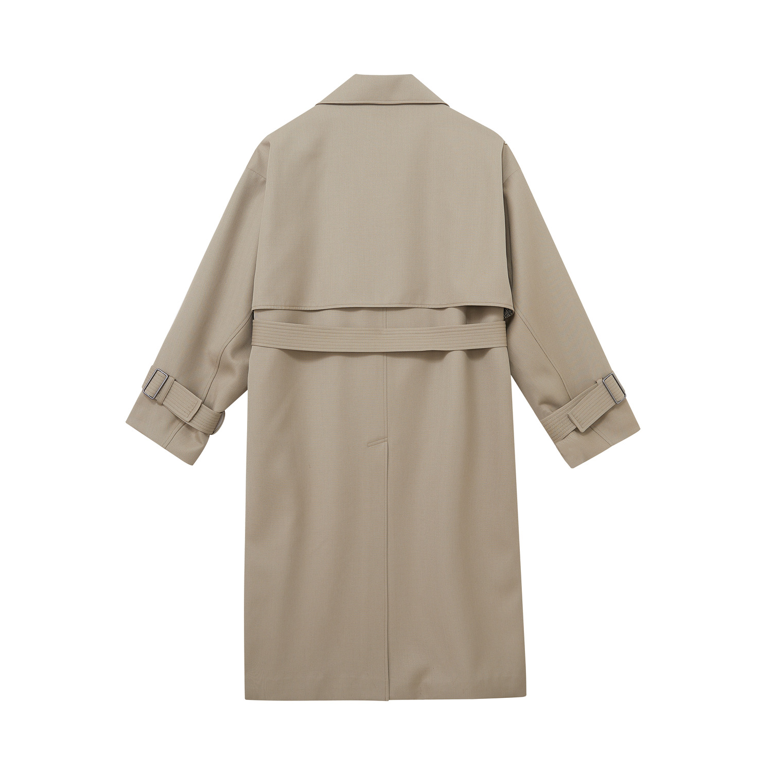 Этот классический двубортный тренчкот с широкими лацканами имеет свободный прямой крой, создающий силуэт от кутюр. Широкие лацканы в сочетании с регулируемыми манжетами и завязками на талии создают универсальный образ. Задняя часть с защитой от ветра и дождя и высоким разрезом создает непринужденный, струящийся образ, смягчающий формальность традиционного тренча.