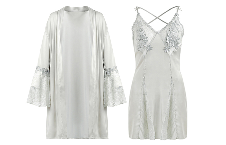 Женский халат из флоу пряжи, элегантный серый (комплект с камисоль в подарочной упаковке) 3 142₽