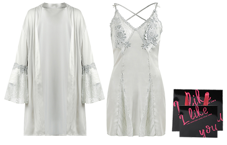 Женский халат из флоу пряжи, элегантный серый (подарочный набор)